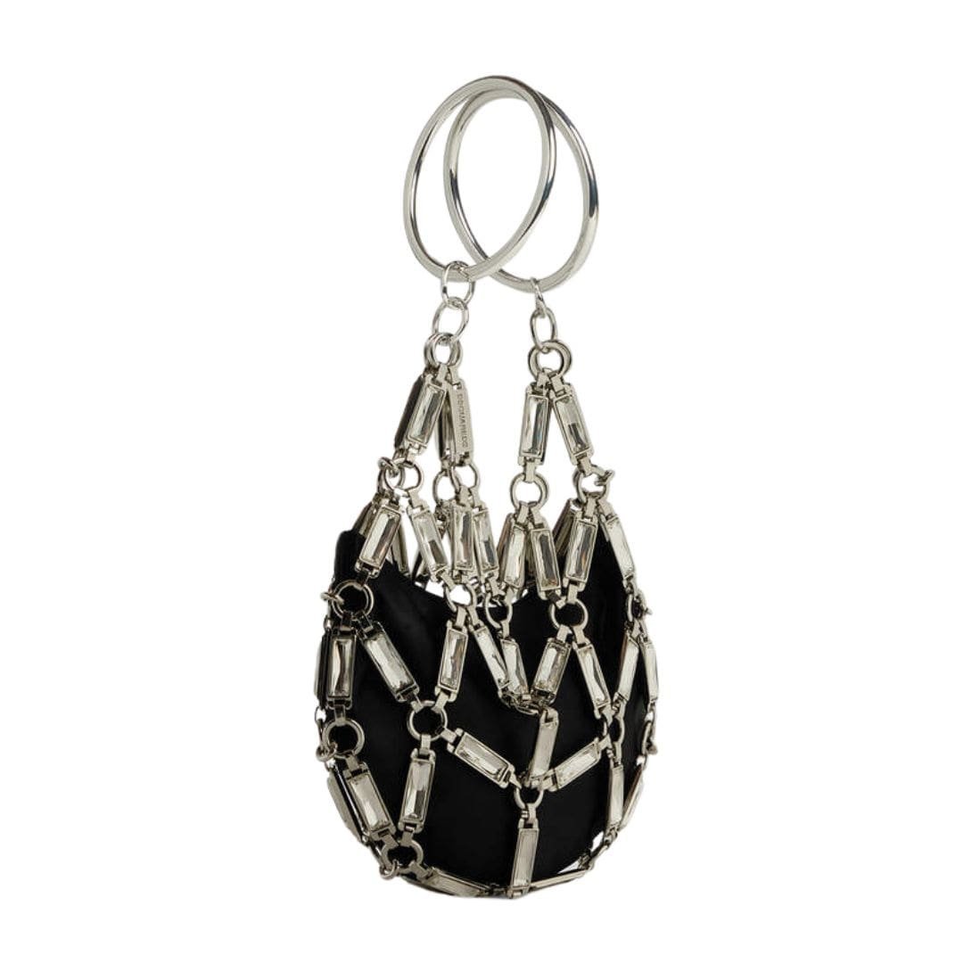 The DSQUARED2 Cage Handbag is a striking accessory that embodies the brand’s signature blend of high fashion and edgy aesthetics. This handbag is meticulously crafted to stand out, combining luxury materials with an avant-garde design to create a truly unique statement piece.