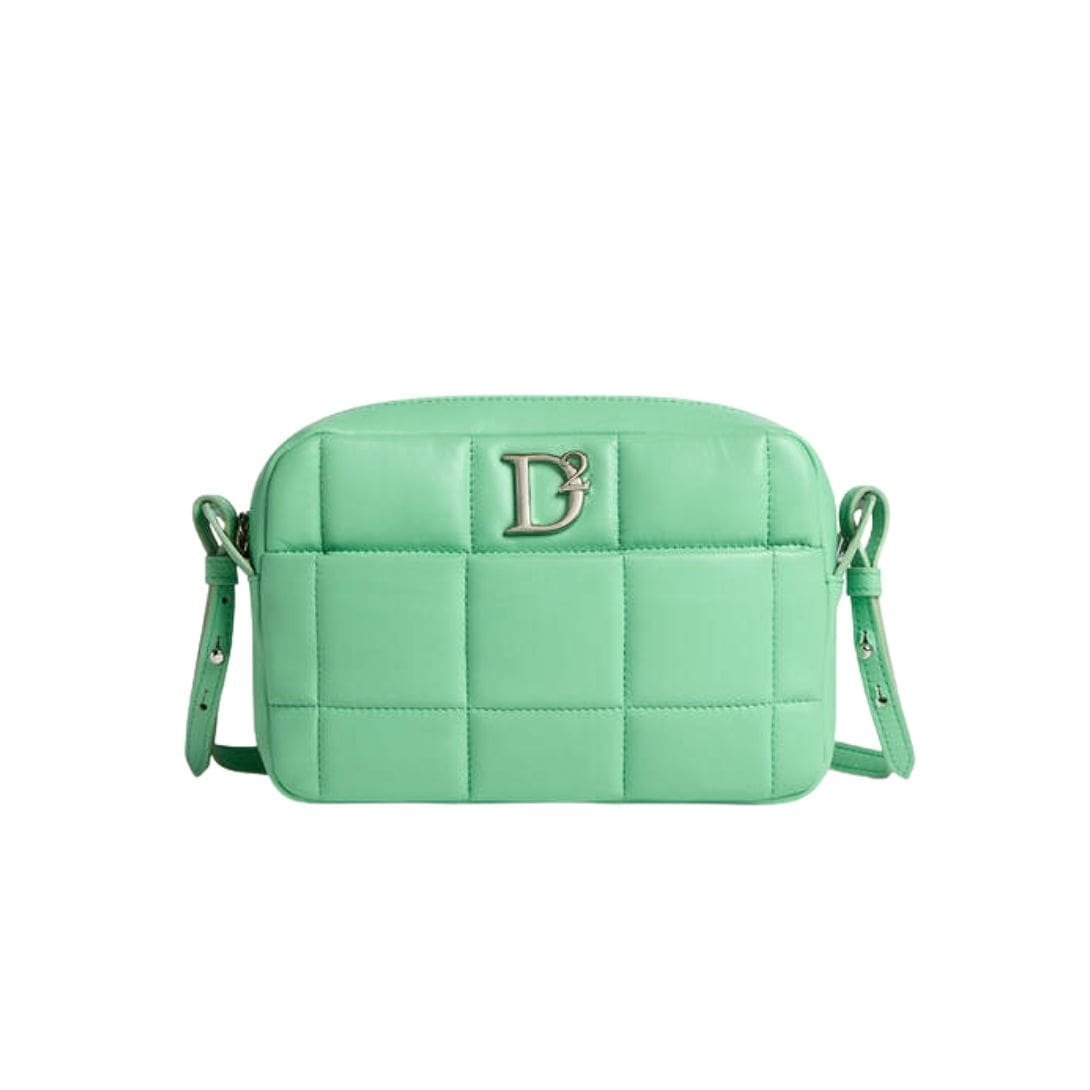 The design features a prominent DSQUARED2 logo, which is tastefully displayed on the front, adding a touch of brand recognition without overwhelming the bag’s elegant simplicity. The adjustable shoulder strap ensures a comfortable fit, catering to various body types and personal carrying preferences. The strap is also detachable, providing the option to convert the crossbody into a clutch for a more refined look.