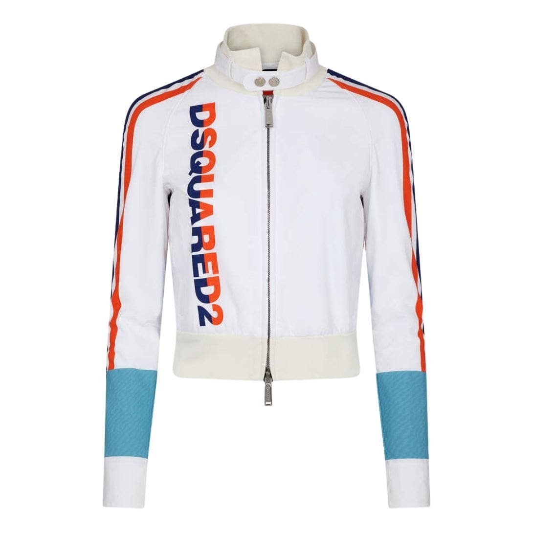 The sleek silhouette of the windbreaker exudes modernity, with clean lines and minimalistic detailing that exude understated sophistication. The iconic Dsquared2 logo is subtly incorporated into the design, adding a touch of brand recognition without overpowering the overall aesthetic.