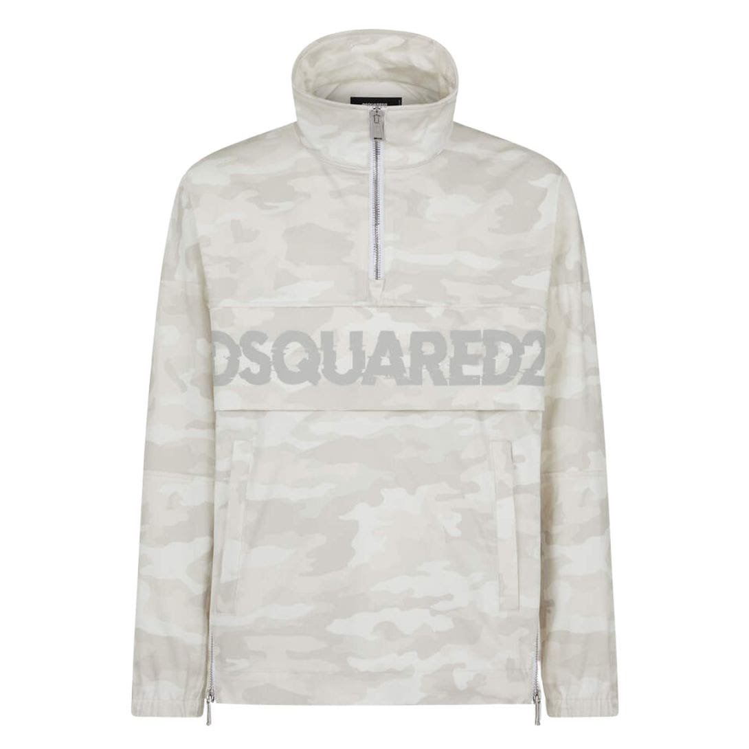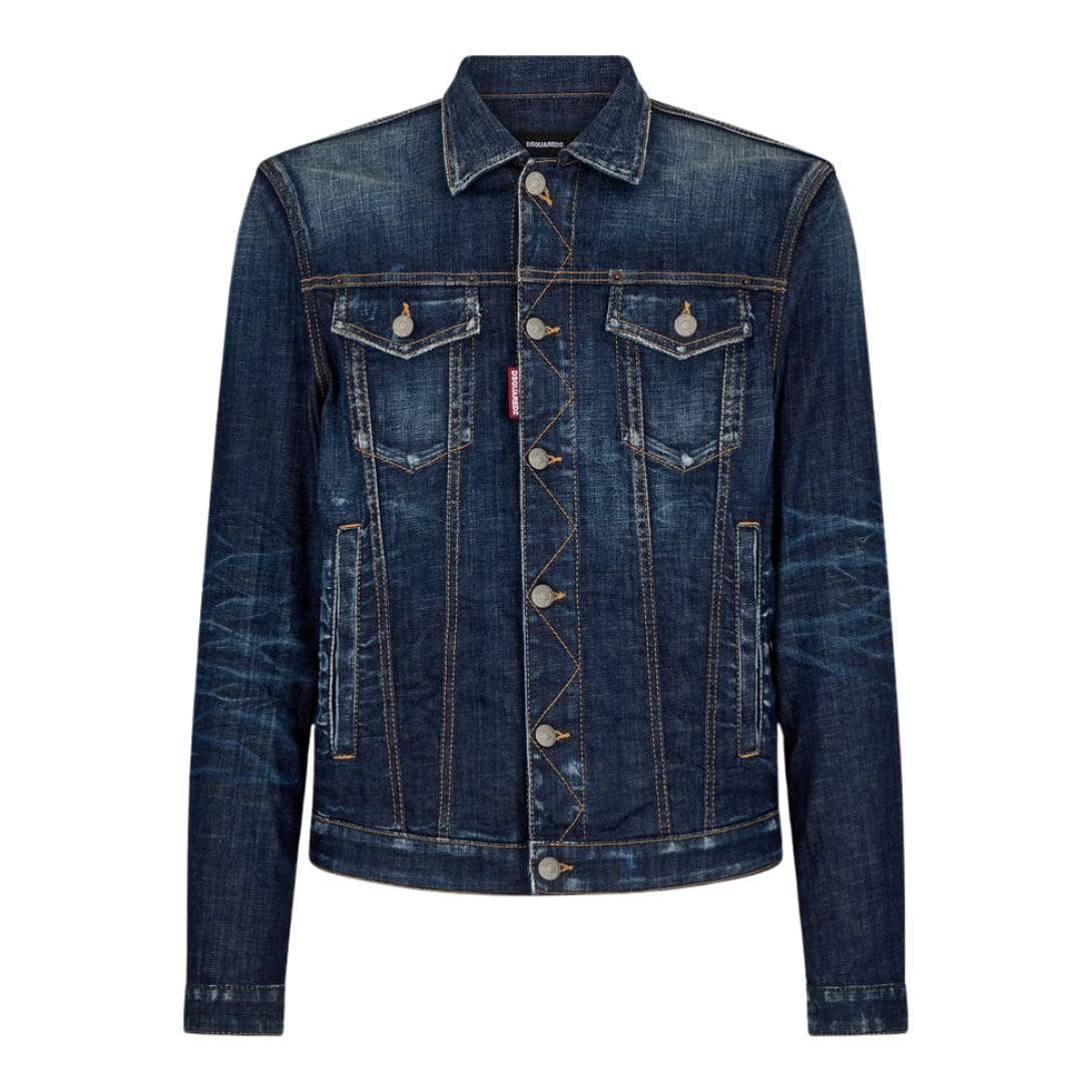 Key design elements include the distinctive distressed detailing, strategically placed to enhance its rugged appeal without compromising on style. The front is adorned with metal buttons embossed with the DSquared2 logo, adding a touch of sophistication and brand recognition. Two chest pockets with button flaps and additional side pockets provide both functionality and aesthetic balance.