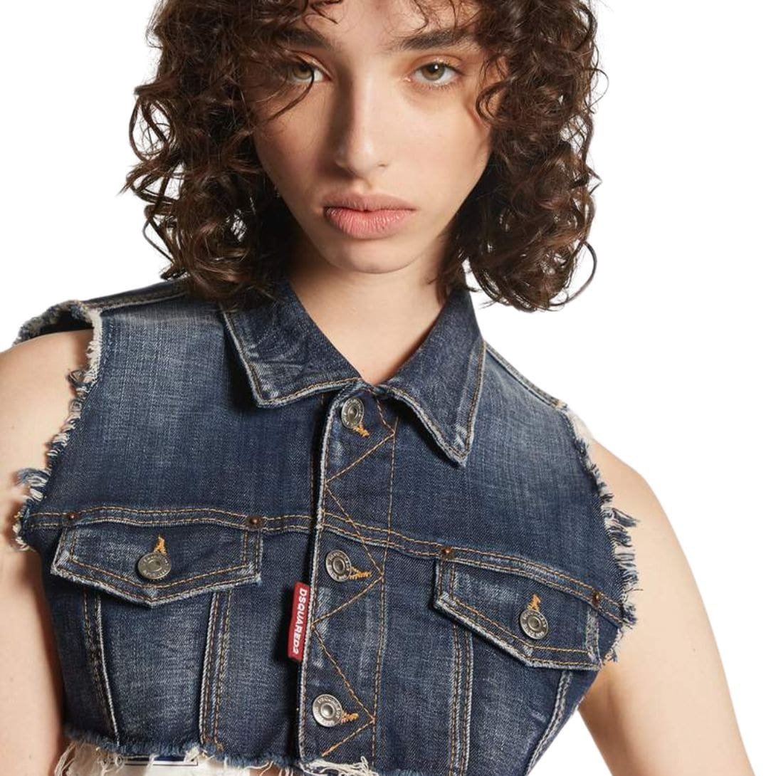 Whether dressed up or down, this vest exudes confidence and individuality, making it a must-have addition to any fashion-forward wardrobe. With its impeccable craftsmanship, attention to detail, and timeless appeal, the DSQUARED2 Denim Cropped Vest is a true statement piece that embodies the spirit of modern luxury.