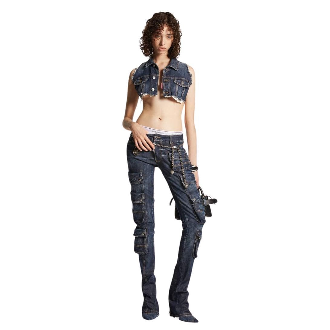 At the forefront of fashion innovation, DSQUARED2 has established itself as a trailblazer in the realm of luxury denim, and this cropped vest is a testament to their enduring legacy. Made from premium quality denim fabric, it boasts a luxurious feel and exceptional durability, ensuring longevity and comfort with every wear.