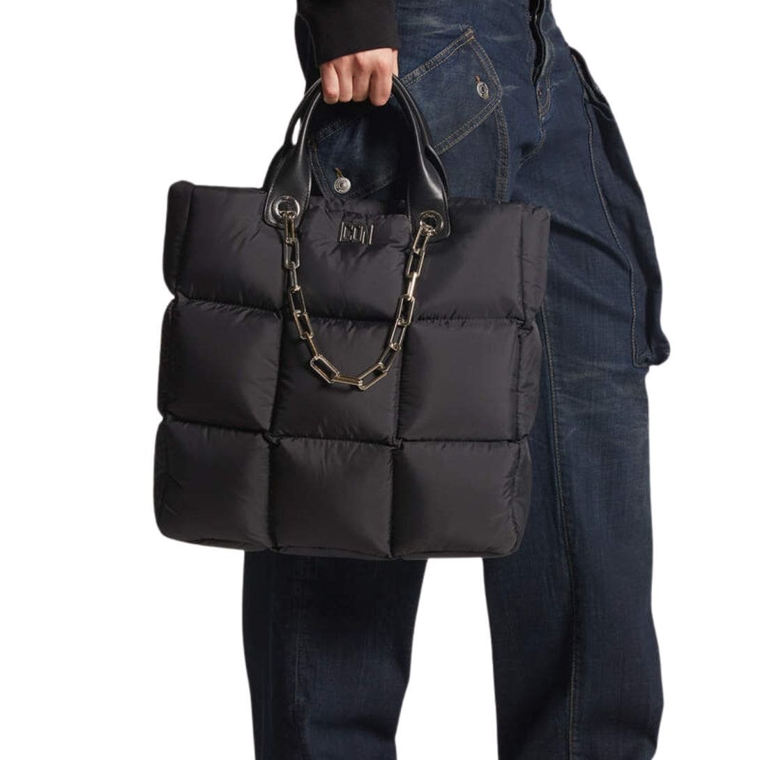 Inside, the DSQUARED2 ICON Clubbing Shopping Bag features a well-organized layout with a combination of open compartments and zippered pockets. This thoughtful design allows for efficient organization of your items, keeping everything from your phone and wallet to makeup and keys neatly in place. The high-quality lining enhances the overall durability of the bag, ensuring it withstands the rigors of daily use.