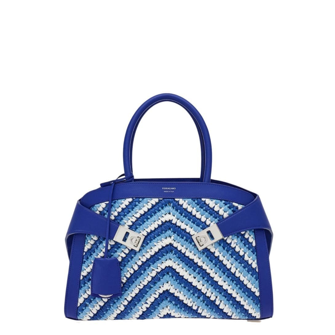 Introducing the epitome of contemporary sophistication fused with timeless allure: behold the Ferragamo Hug Handbag (S), now in its captivating summer edition. Crafted meticulously by skilled artisans, this exquisite top handle exemplifies the unparalleled craftsmanship and quality synonymous with Ferragamo’s leather goods legacy.