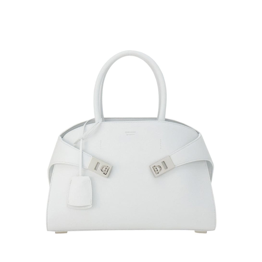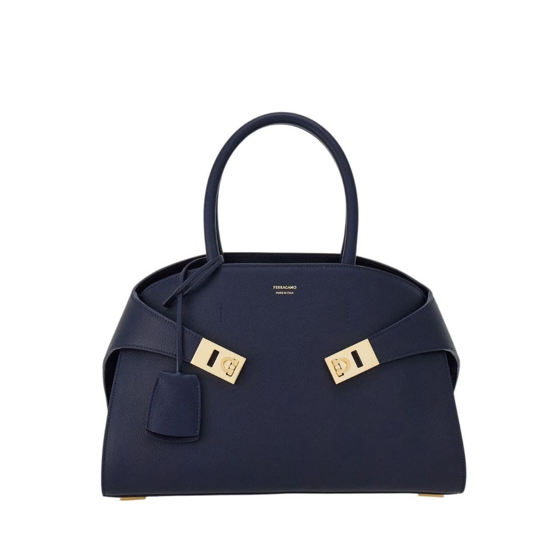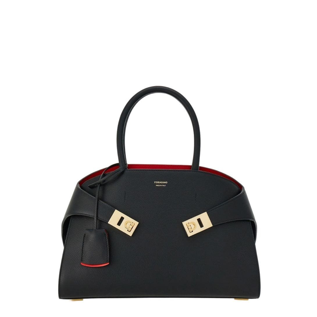 Adding a subtle touch of sophistication is the tonal leather fob adorning the rigid top handle, a testament to Ferragamo’s commitment to meticulous craftsmanship and attention to detail. Rectangular foot studs not only protect the bag but also serve as a confirmation of its iconic status, further elevating its appeal.