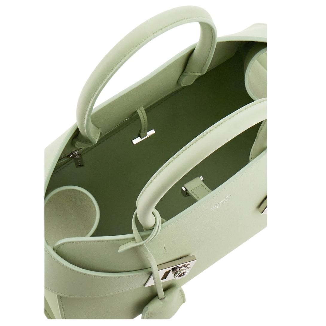 At the heart of its design lies an innovative asymmetrical back panel, delicately enveloping the front one to create a distinctive “hug” effect. This unique feature is accentuated by two wide leather straps adorned with custom Gancio clasps, adding a touch of opulence to the bag’s aesthetic.