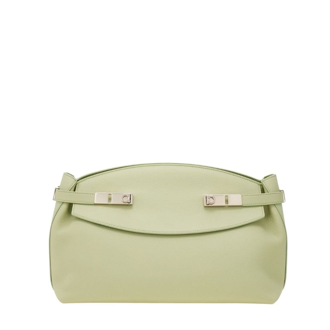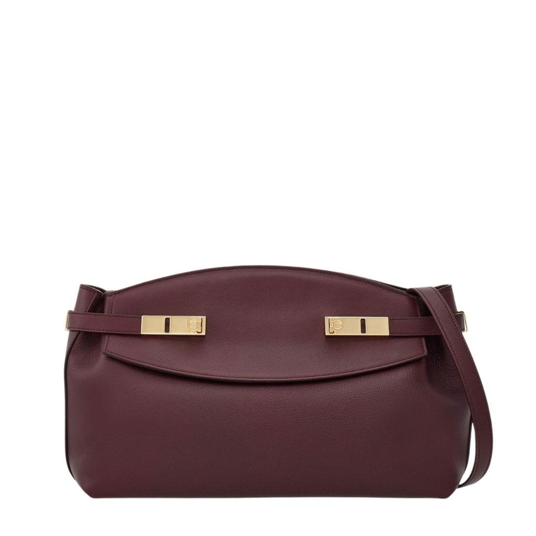 Indulge in the luxurious charm of the compact Hug shoulder bag, a quintessential accessory that exudes softness and sophistication, destined to elevate any ensemble to new heights of chic elegance. Embracing a deconstructed silhouette, this rendition of the Ferragamo Hug shoulder bag is a masterful blend of modern design and timeless allure.