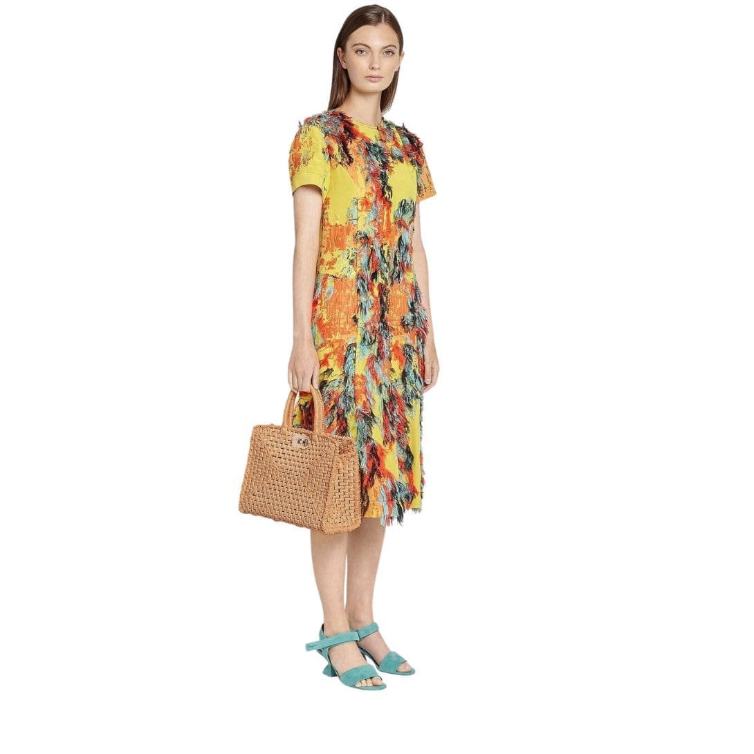 The colourful raffia exterior, reminiscent of sun-drenched landscapes and tropical hues, sets the stage for a journey into luxury and sophistication. Each strand of raffia is carefully selected and expertly woven by hand, creating a mesmerizing tapestry of texture and colour that captivates the senses.