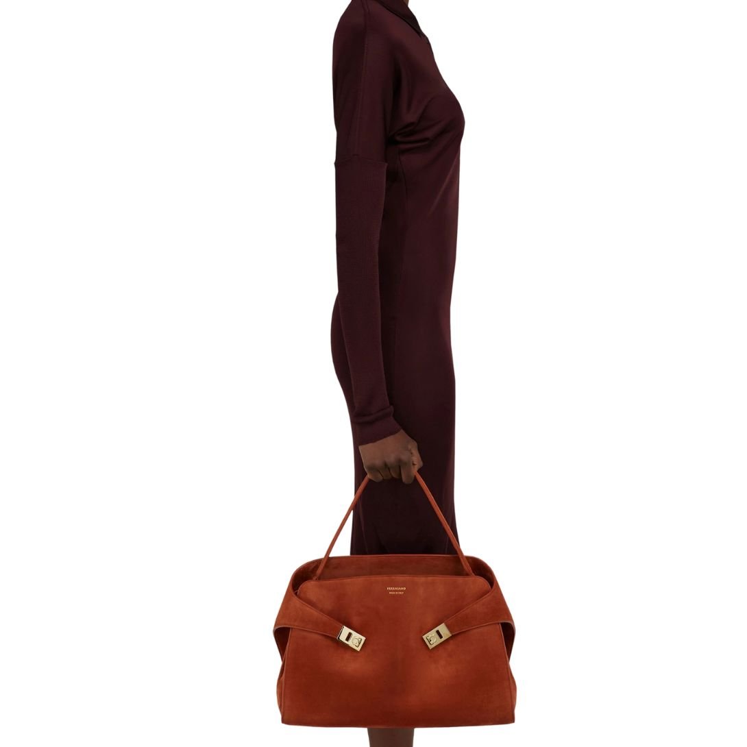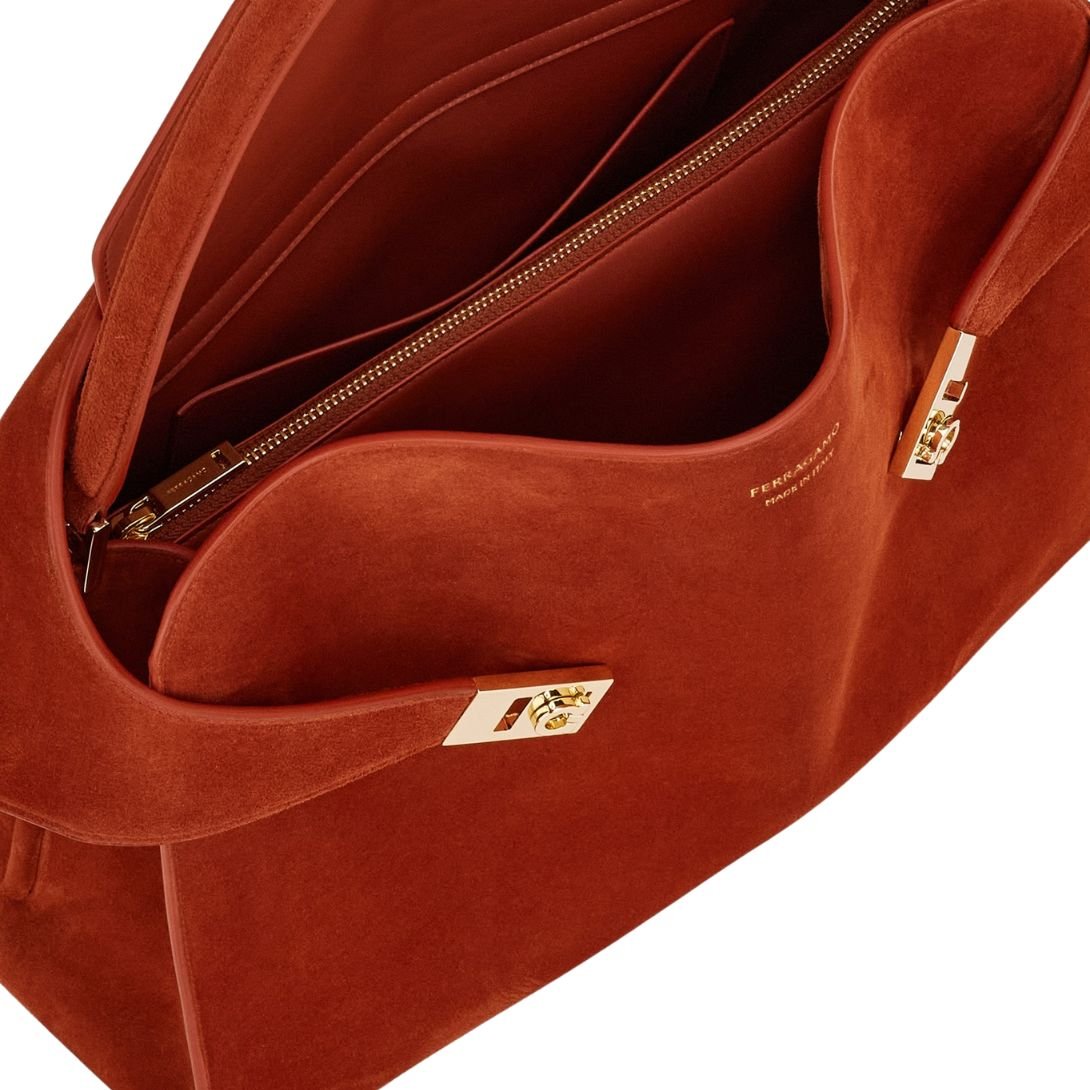FERRAGAMO WOMEN HUG BICOLOR LEATHER SHOULDER BAG BRICK