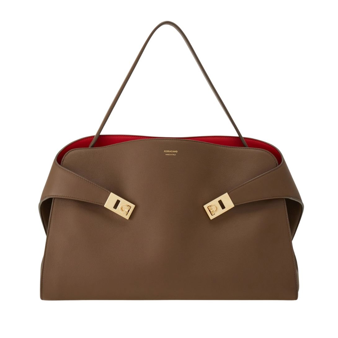 FERRAGAMO WOMEN HUG BICOLOR LEATHER SHOULDER BAG CLAY FLAME RED