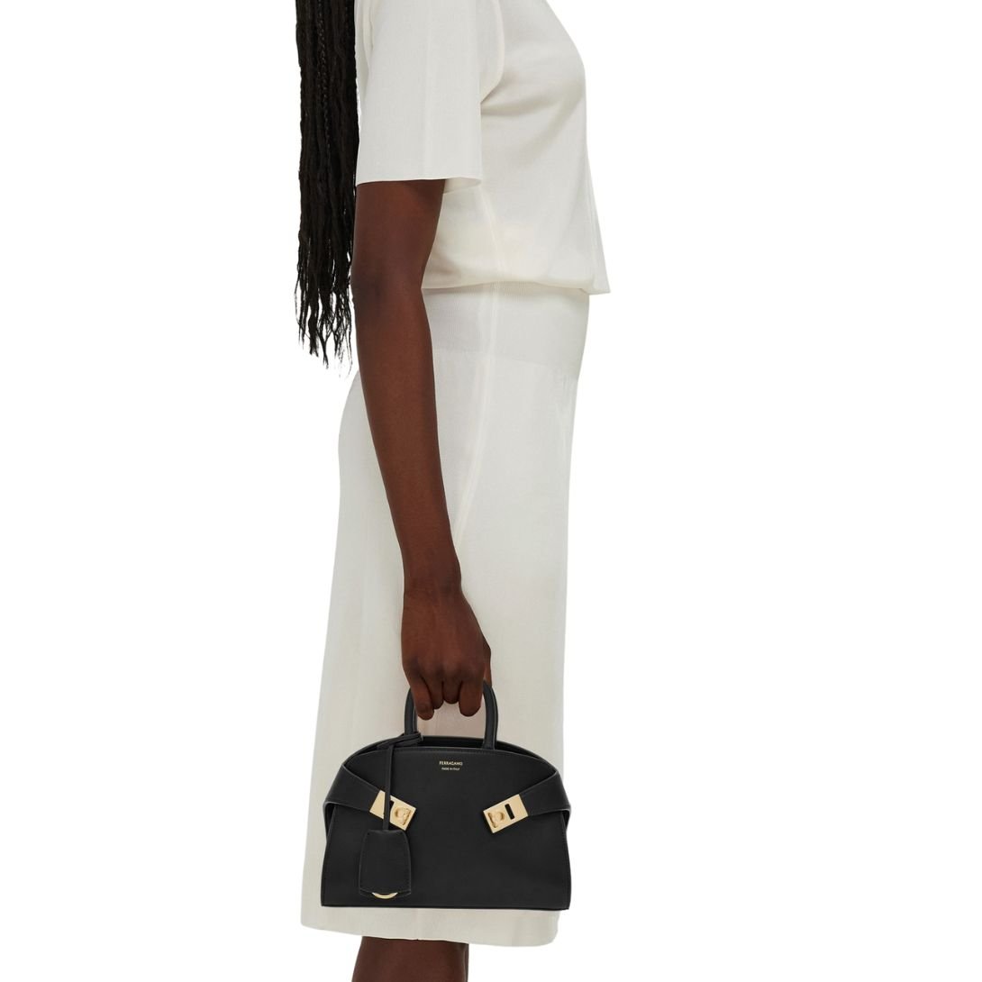 FERRAGAMO WOMEN HUG SMALL LEATHER HANDBAG BLACK