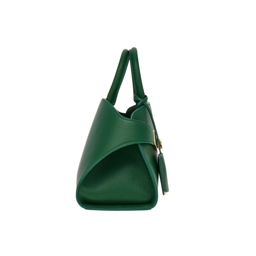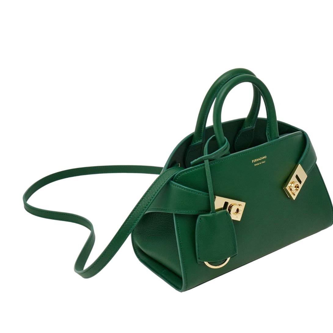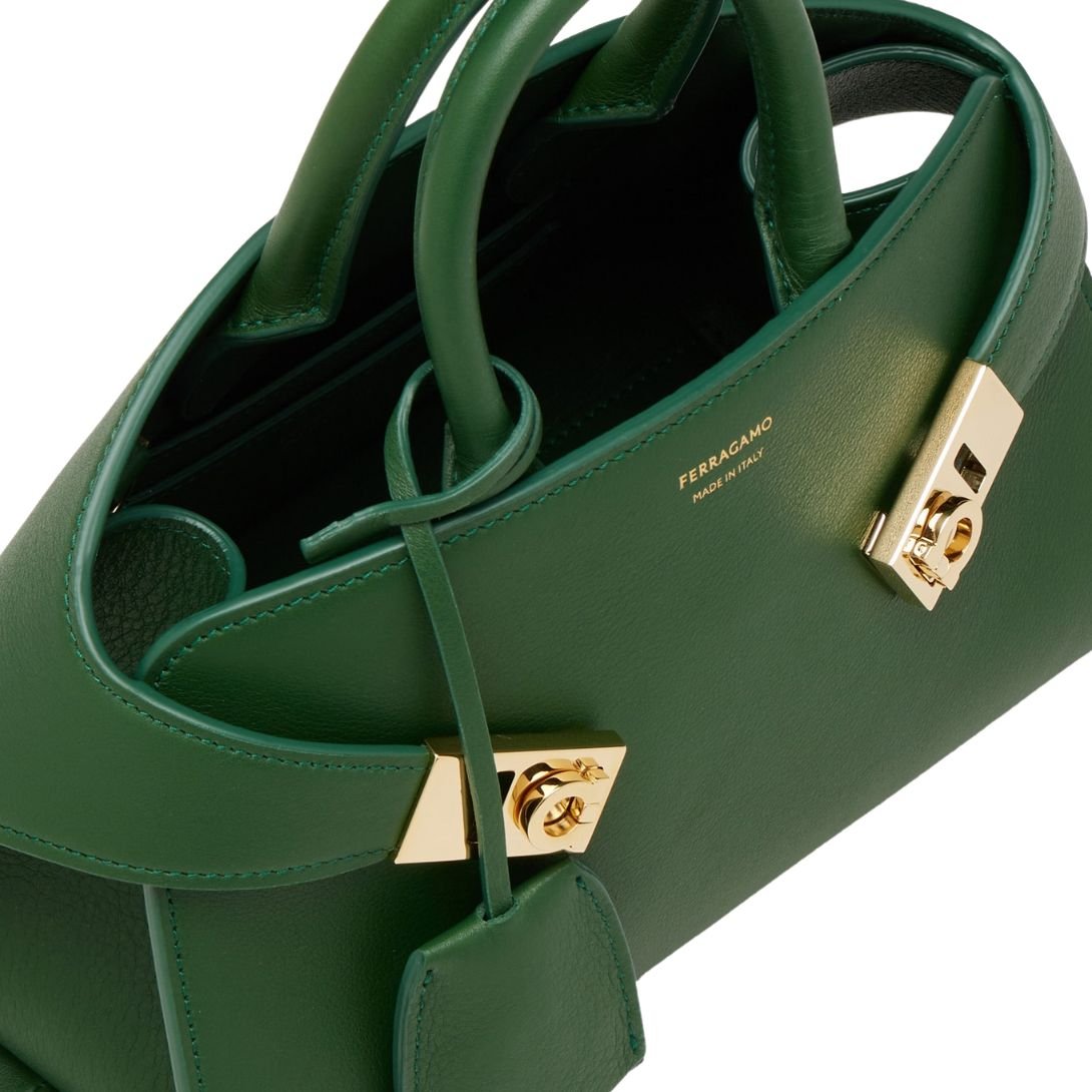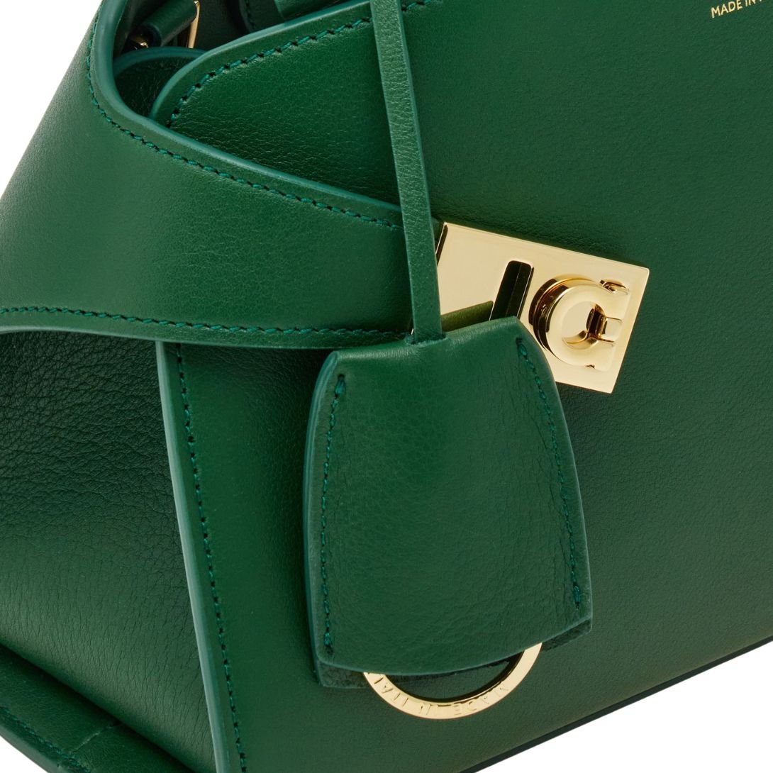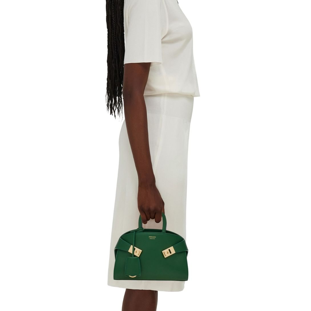 FERRAGAMO WOMEN HUG SMALL LEATHER HANDBAG FOREST GREEN