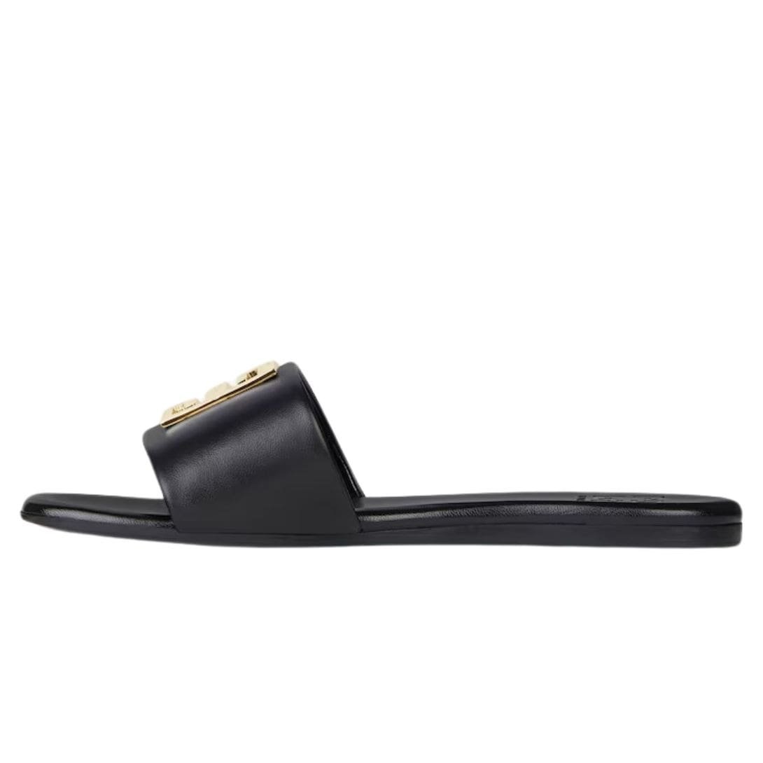 The sleek, minimalist silhouette of the 4G Flat Mules is complemented by the brand’s iconic 4G emblem, prominently displayed on the upper. This signature hardware, rendered in a polished metallic finish, adds a touch of opulence and instantly identifies the mules as a creation of the prestigious fashion house. The emblem serves as both a decorative element and a symbol of Givenchy’s legacy of excellence in design. GIVENCHY 4G FIAT MULES IN LEATHER