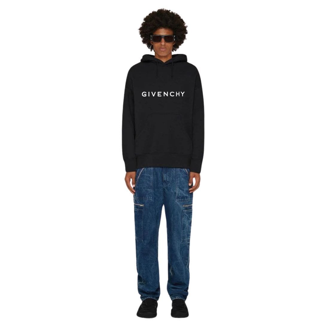 The color palette of the hoodie is both modern and sophisticated, often featuring muted tones or classic neutrals that complement any wardrobe. The Givenchy logo is subtly embossed or printed, adding a touch of brand recognition without overwhelming the overall design.