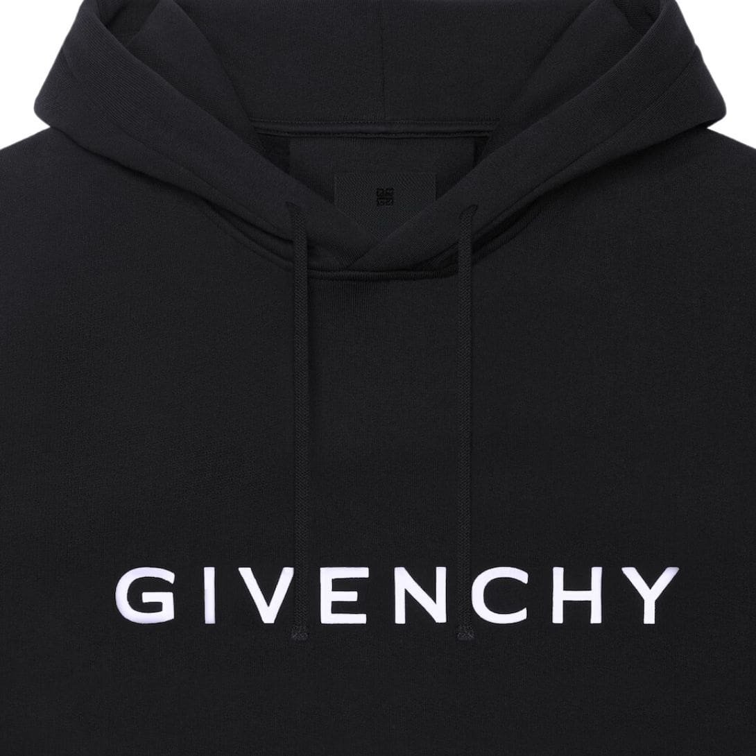 One of the standout details of the Givenchy Archetype hoodie is its minimalistic design. It boasts a classic drawstring hood, adjustable for a personalized fit, and a spacious front kangaroo pocket that combines practicality with style. The ribbed hem and cuffs provide a snug fit and help to retain warmth, ensuring that the hoodie remains functional and stylish.