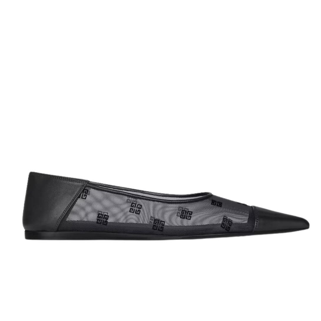 The Givenchy Ballerina in 4G Mesh is a stunning fusion of elegance and modern design, embodying the essence of contemporary luxury. This sophisticated shoe features a sleek silhouette that mirrors the grace of traditional ballet flats, while innovative materials elevate its aesthetic appeal. Crafted from lightweight, breathable mesh, the upper showcases the iconic 4G pattern, a hallmark of the brand’s distinctive identity, woven intricately to create a striking visual effect.