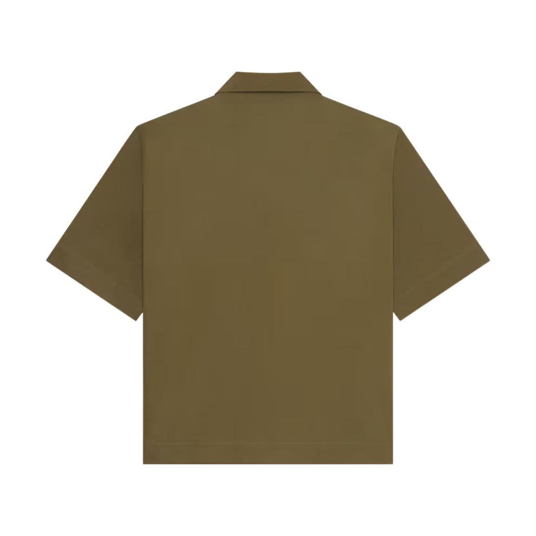 The shirt features a boxy, oversized fit that provides a modern silhouette while ensuring comfort and ease of movement. This design choice accentuates a relaxed, nonchalant style, making it a versatile piece that pairs effortlessly with a variety of bottoms, from tailored shorts to casual chinos.