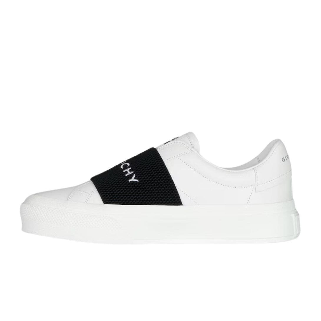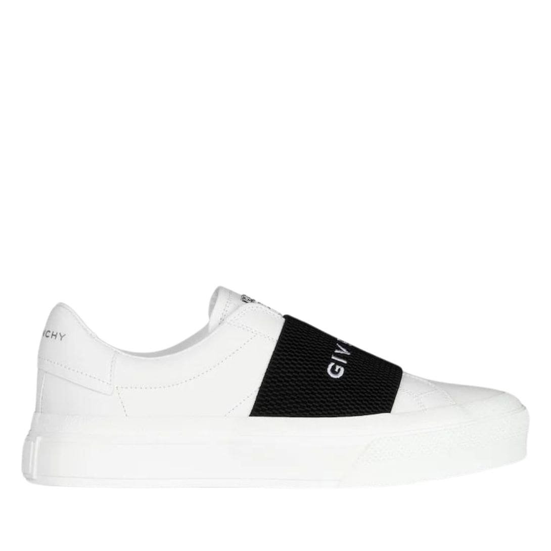 The Givenchy City Sport Sneakers in leather effortlessly blend luxury and contemporary style, making them a must-have for any fashion-forward wardrobe. Crafted from high-quality leather, these sneakers offer a sleek and polished look while ensuring durability and comfort for everyday wear. The smooth finish exudes sophistication, allowing these shoes to seamlessly transition from casual outings to elevated streetwear ensembles. GIVENCHY CITY SPORT SNEAKERS IN LEATHER WITH CIVENCHY STRAP