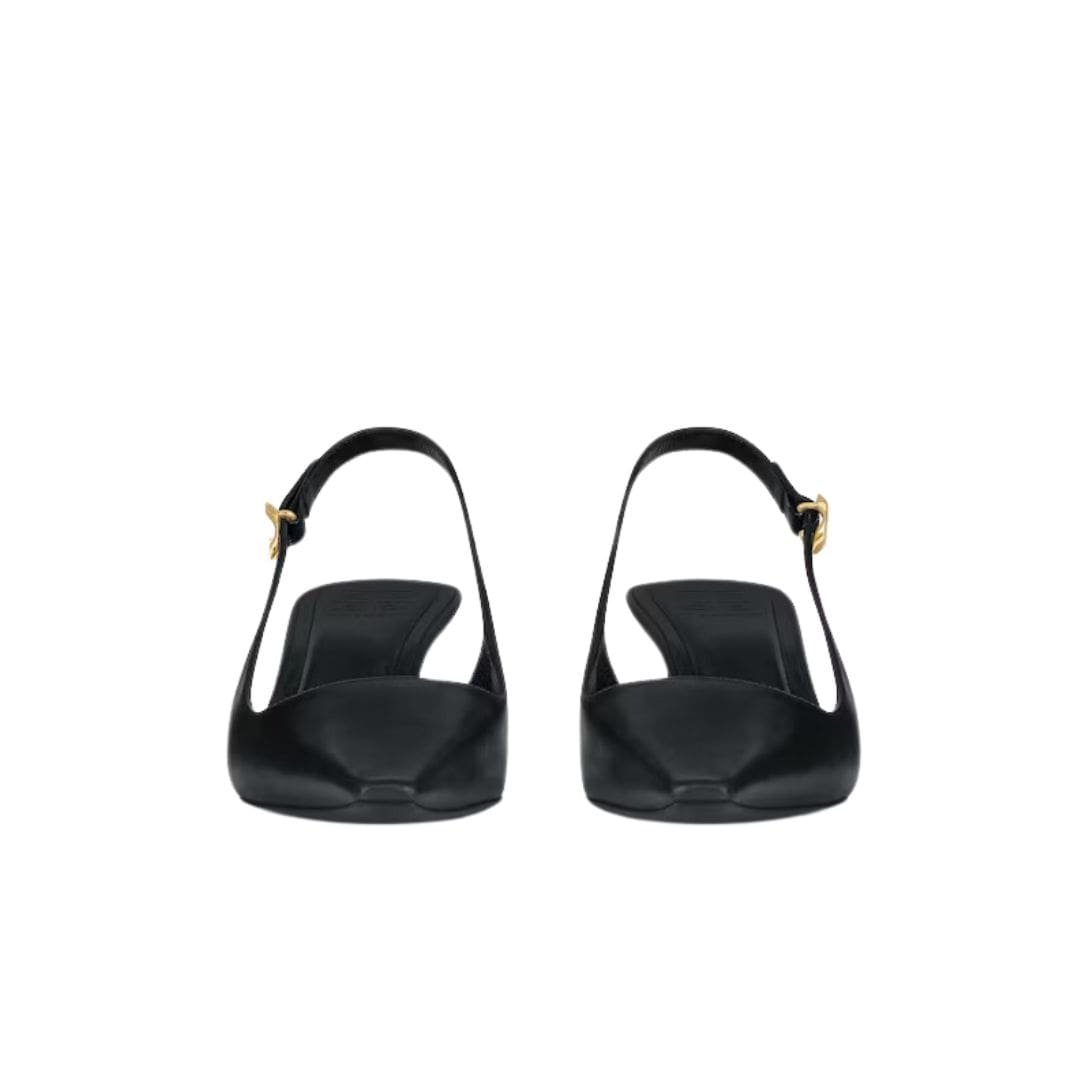 The design features a pointed toe, which adds a touch of sophistication and elongates the leg for a flattering silhouette. The slingback strap is not only stylish but also functional, ensuring a secure fit. This strap is adjustable, allowing for a customized fit and added comfort. The closure is discreet, maintaining the shoe’s clean lines and minimalist aesthetic.