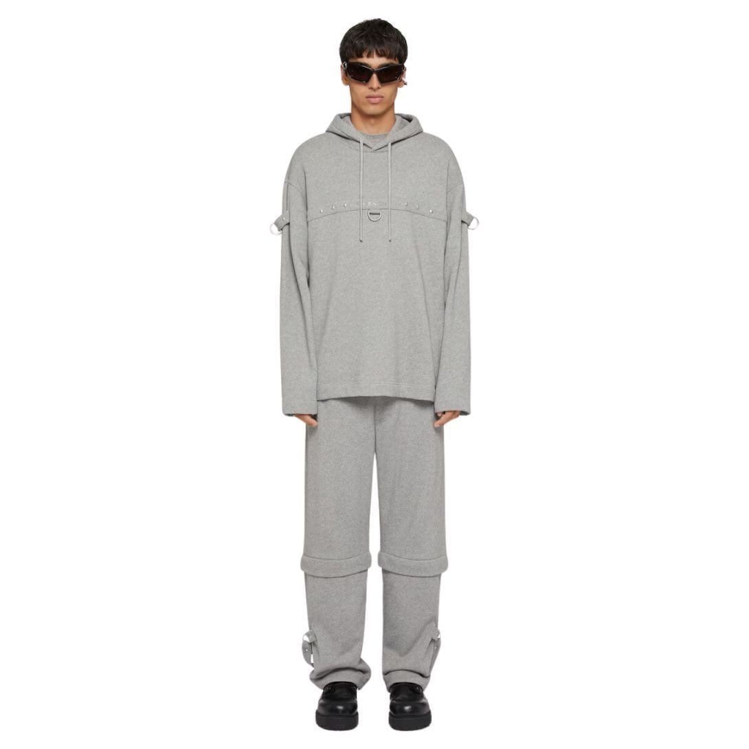 Distinctive metal details elevate this hoodie beyond the ordinary. Strategically placed metal accents, such as eyelets and zip pulls, add a touch of edginess and sophistication. These elements are subtly integrated into the design, creating a harmonious balance between sleek metal finishes and the softness of the fleece. The metal hardware also introduces a contemporary contrast, giving the hoodie a modern, urban edge.