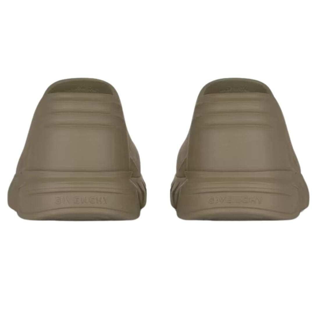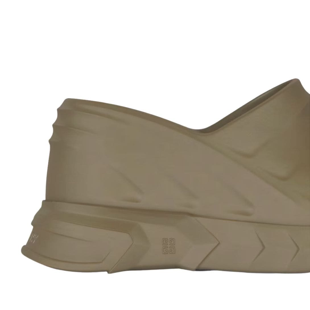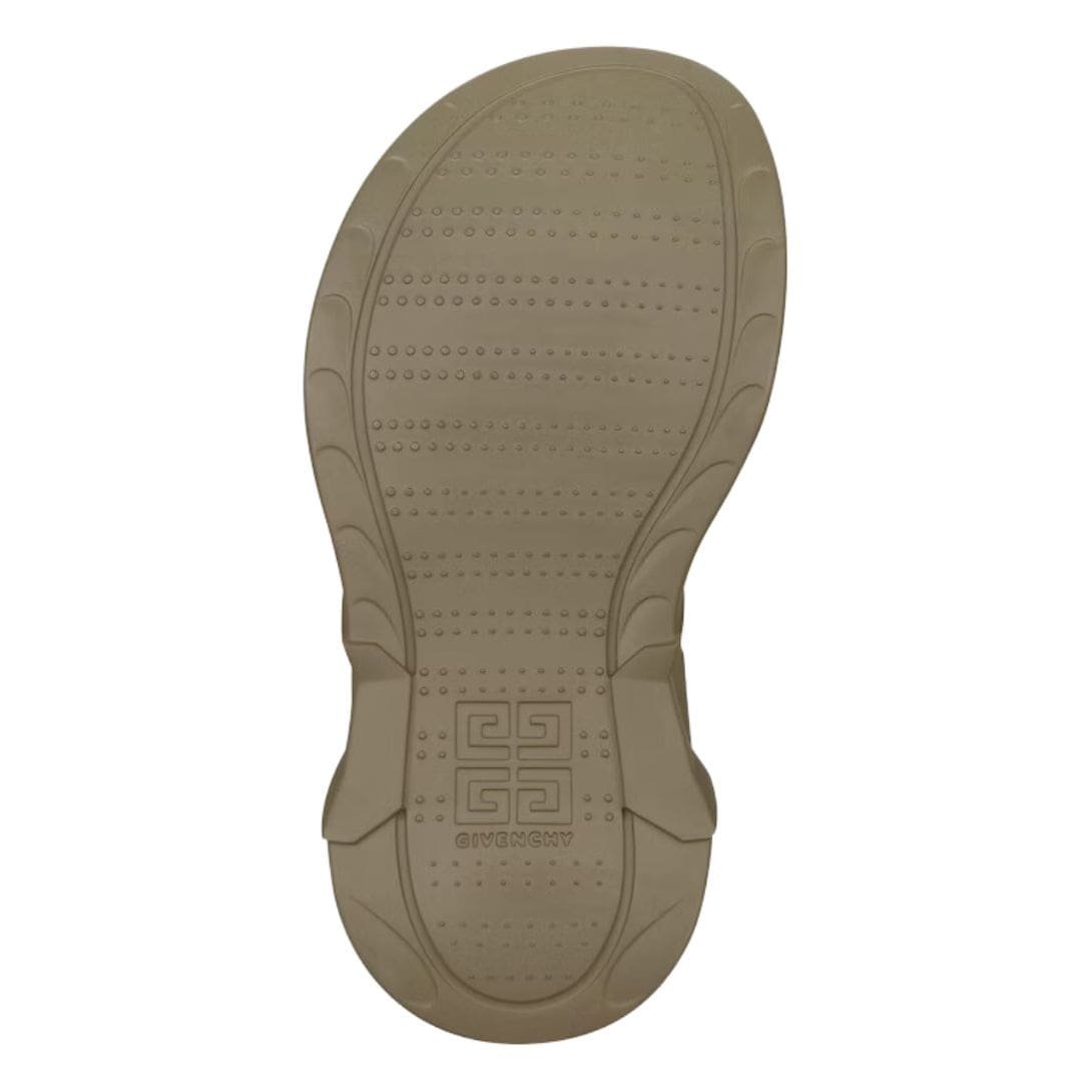 The upper part of the sandals is designed with wide, crisscrossing straps that securely hold the foot in place. These straps are also made from rubber, ensuring a cohesive and seamless look throughout the shoe. The open-toe design provides breathability, making them ideal for warmer weather. Givenchy’s logo is subtly embossed on the straps, adding a touch of luxury and brand recognition without overwhelming the design.