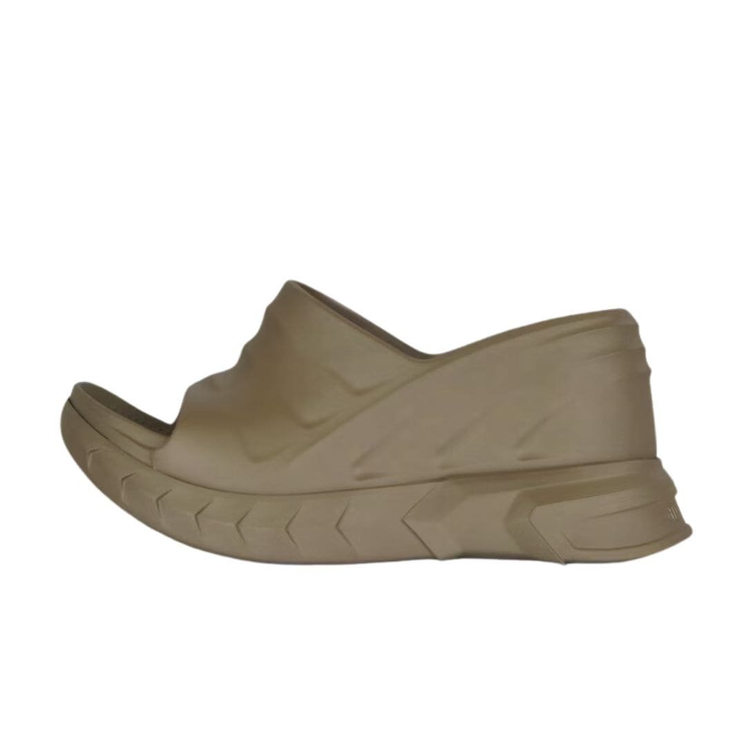 The Givenchy Marshmallow Wedge Sandals in rubber are a striking blend of contemporary design and bold aesthetics, perfect for making a statement. These sandals showcase Givenchy’s innovative approach to fashion, combining comfort and style in a unique and eye-catching silhouette.