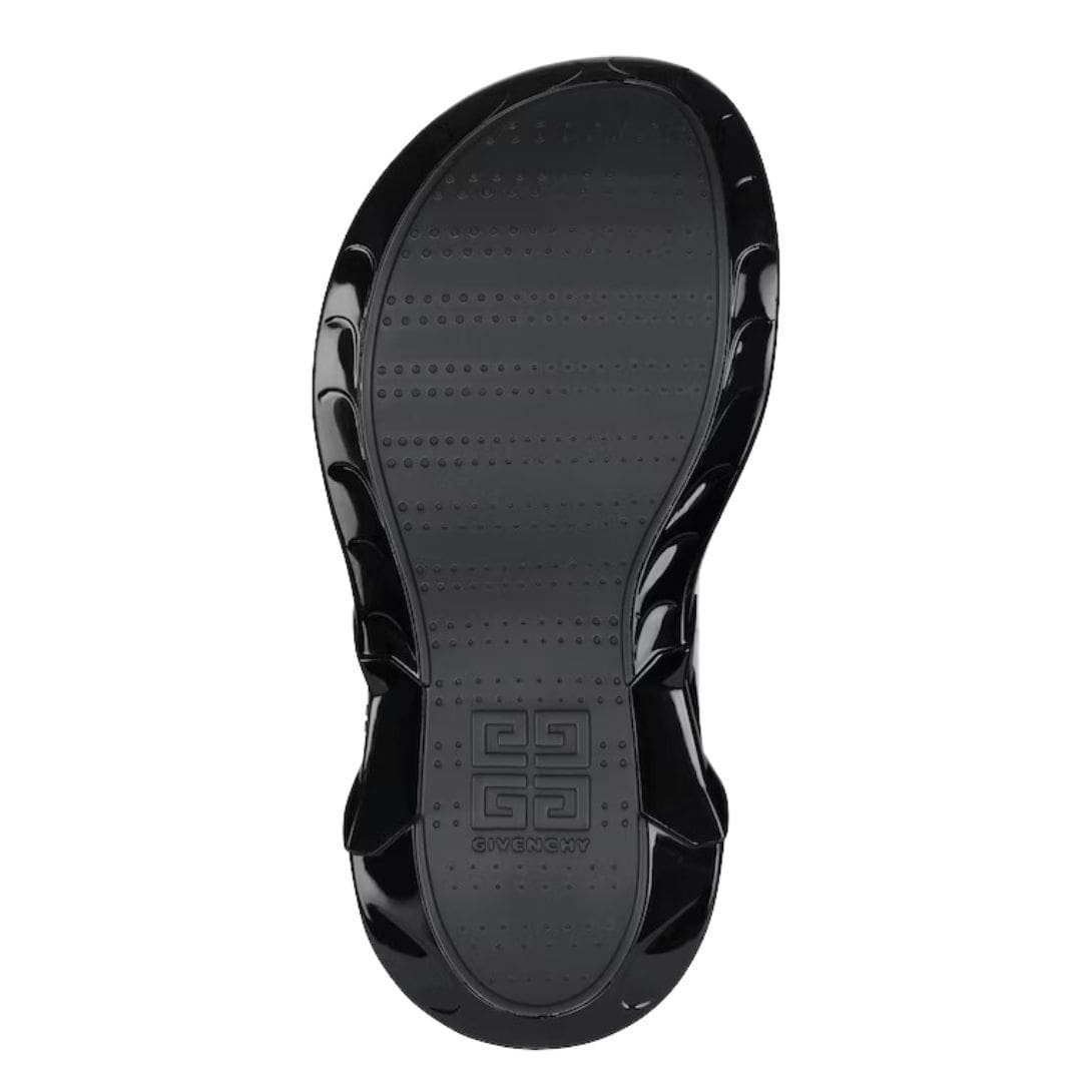 The upper part of the sandals is crafted from high-quality rubber, showcasing Givenchy’s commitment to using premium materials. The rubber material is not only resilient but also easy to maintain, promising longevity without compromising on style. The sleek, minimalist straps enhance the sandals’ overall aesthetic, offering a sophisticated contrast to the substantial sole.