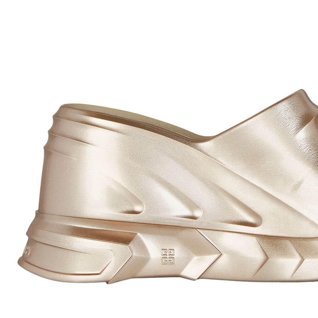 Available in a variety of colors to suit different tastes and preferences, the Givenchy Marshmallow Wedge Sandals in laminated rubber are not merely footwear but a statement piece that embodies the intersection of luxury and contemporary fashion. Perfect for those who appreciate cutting-edge design and quality craftsmanship, these sandals are a testament to Givenchy’s ongoing commitment to innovation in footwear.