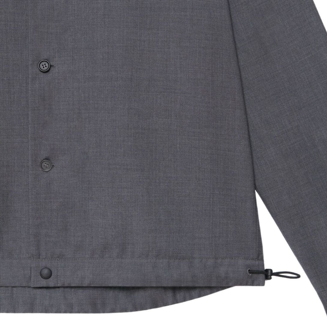 The design of the overshirt features a streamlined silhouette with a modern cut, making it an ideal layering piece for both formal and casual occasions. It is tailored with a slightly relaxed fit, allowing for ease of movement without sacrificing style. The overshirt showcases a classic button-front closure with sleek, branded buttons that add a touch of refinement.