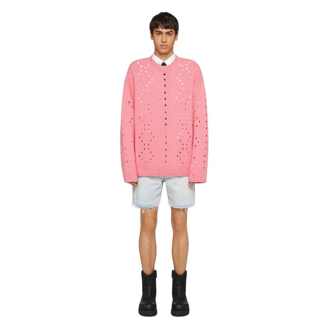 The Givenchy Oversized Sweater in Wool is a statement piece that effortlessly combines luxury with comfort. Crafted from premium wool, this sweater embodies both warmth and softness, ensuring that you stay cozy even on the coldest days. The wool’s natural breathability and insulating properties make this sweater versatile enough for various seasons, making it a staple in any wardrobe.