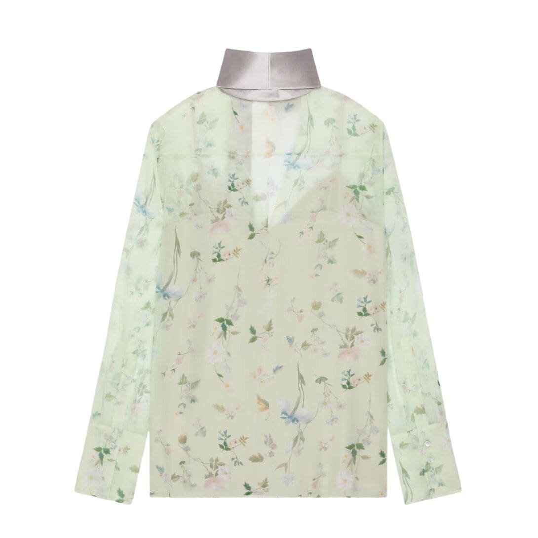 Introducing the Givenchy Printed Blouse In Silk Chiffon With Lavallière, the Givenchy printed blouse in delicate silk chiffon is a vision of modern elegance. Adorned with captivating prints, it captivates with its intricate patterns and vibrant hues, exuding a sense of refined sophistication. The addition of a lavallière detail at the neckline adds a touch of romanticism, draping gracefully and enhancing the blouse’s feminine allure. Crafted with meticulous attention to detail, this blouse features a flattering silhouette that gently skims the body. Whether paired with tailored trousers for a polished look or with denim for a more casual ensemble, it effortlessly elevates any outfit with its luxurious texture and timeless charm. The lightweight silk chiffon fabric ensures fluidity and movement, making it an ideal choice for both day and evening occasions. With its combination of striking design and exquisite craftsmanship, the Givenchy printed blouse is a statement piece that exudes sophistication and style.