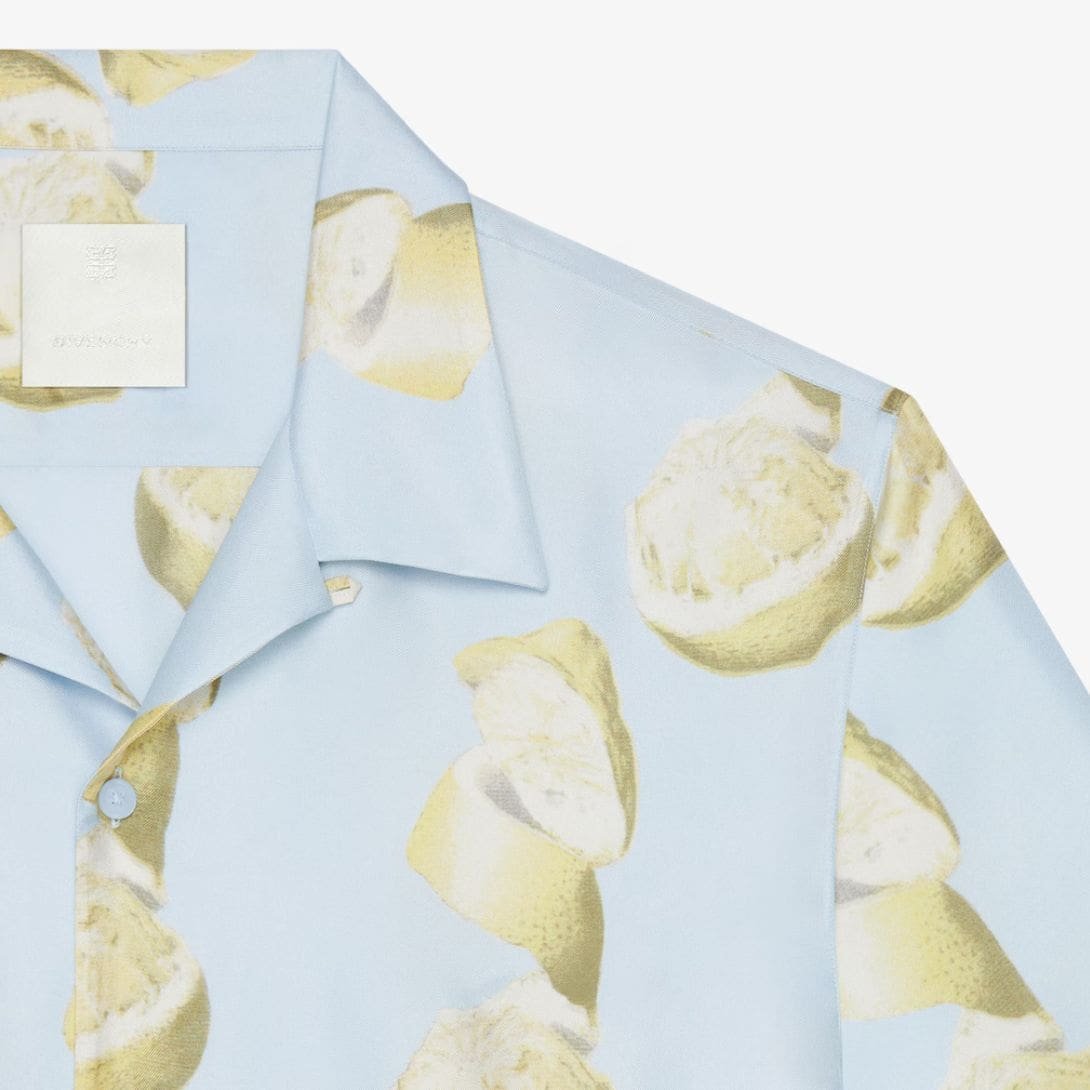 The shirt features an intricate, all-over print that blends bold patterns with subtle details, creating a striking visual effect that draws attention. The design often showcases Givenchy’s signature motifs or a unique pattern, offering a touch of high fashion and artistic flair. The color palette is carefully selected to complement the print, ensuring that the shirt remains versatile and easy to integrate into various outfits.