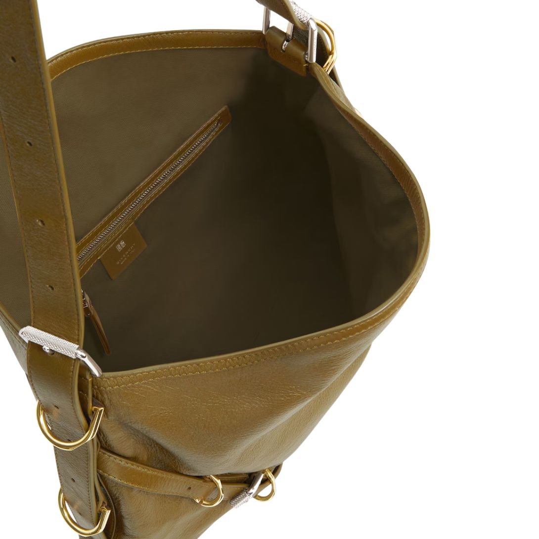Inside, the roomy main compartment includes a zipped pocket for secure storage, making it ideal for daily essentials or weekend outings. The GIVENCHY embossed signature on the front and on the top of the shoulder strap completes the look with subtle branding and timeless appeal.