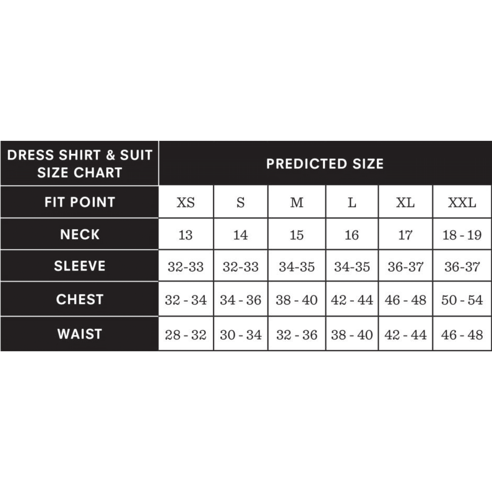 XS, S, M, L, XL, 2XL, MADE TO MEASURE