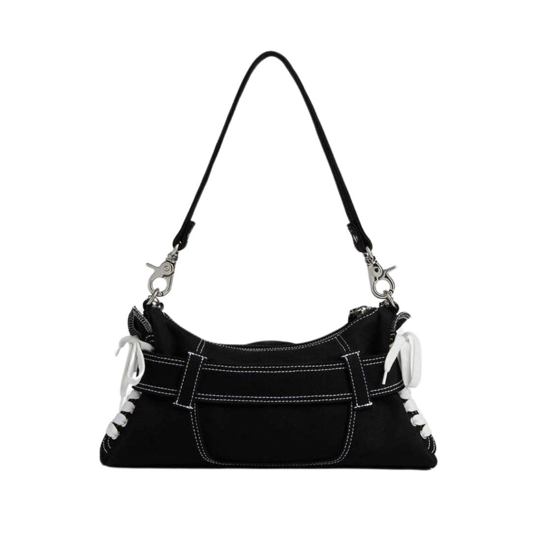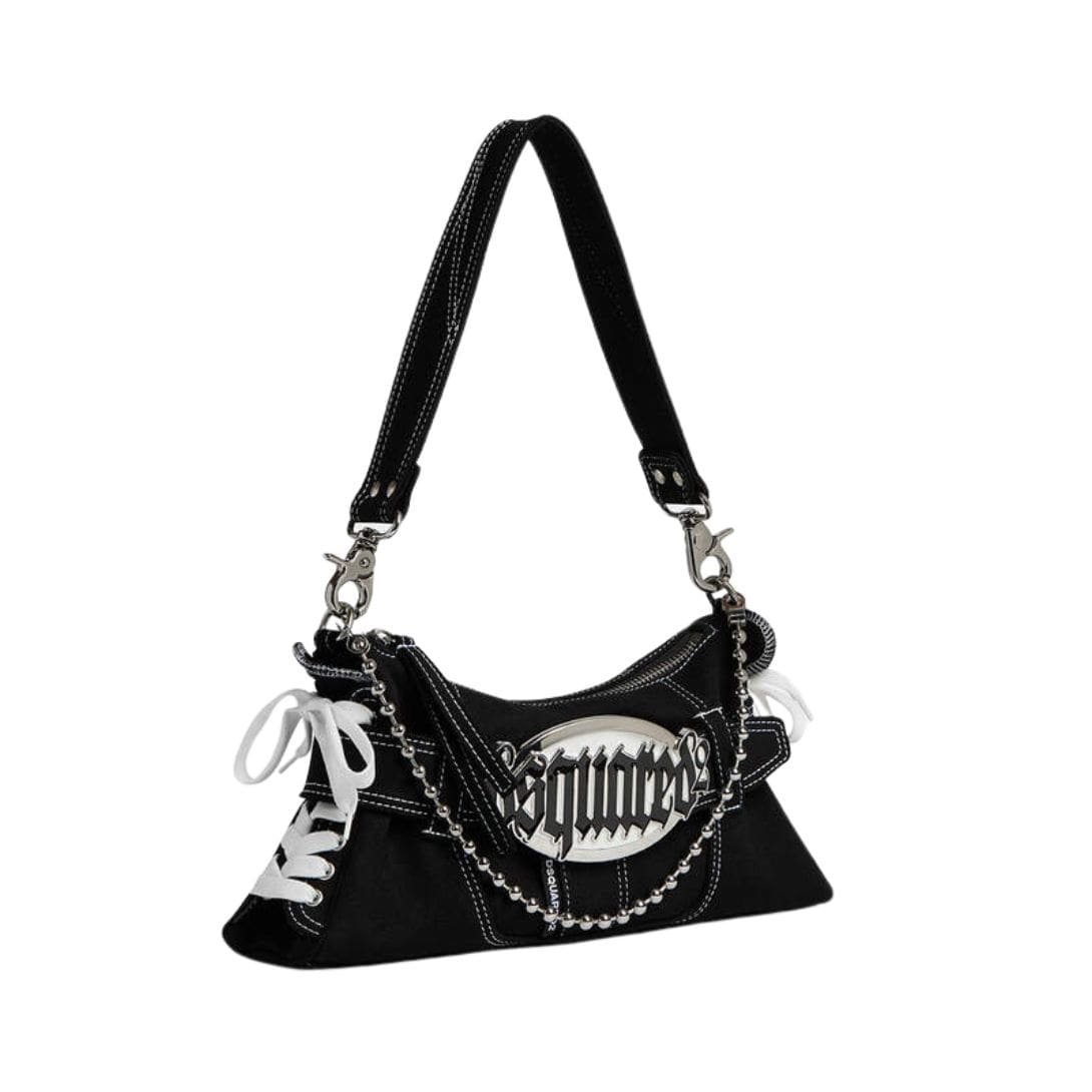 Overall, the Gothic Dsquared2 Denim Shoulder Bag is a perfect embodiment of contemporary gothic fashion. It merges practicality with high style, making it an ideal accessory for those who want to express their individuality and fashion-forward sensibility. Whether paired with casual jeans or a chic dress, this bag adds a distinctive edge to any outfit, making it a must-have for fashion enthusiasts who appreciate the blend of modernity and classic gothic influences.