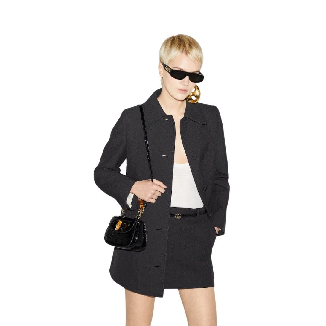 Crafted from supple, high-quality leather, this mini bag features a sleek, structured silhouette that exudes refined elegance. The standout feature is its distinctive bamboo handle, a nod to Gucci’s rich history. This handle is meticulously crafted from sustainable bamboo, showcasing the brand’s commitment to eco-friendly practices while adding a unique touch of natural beauty to the design.