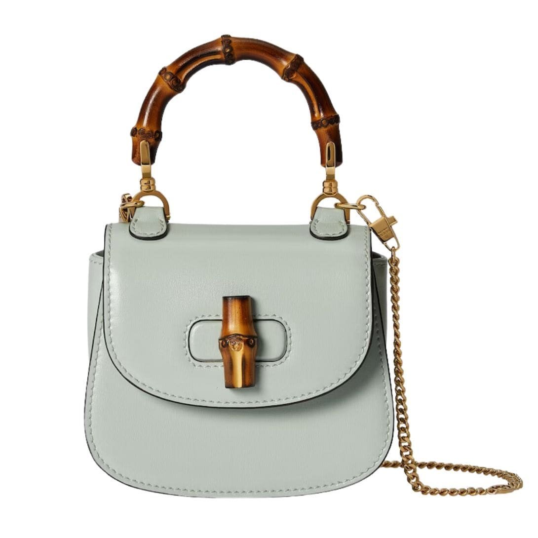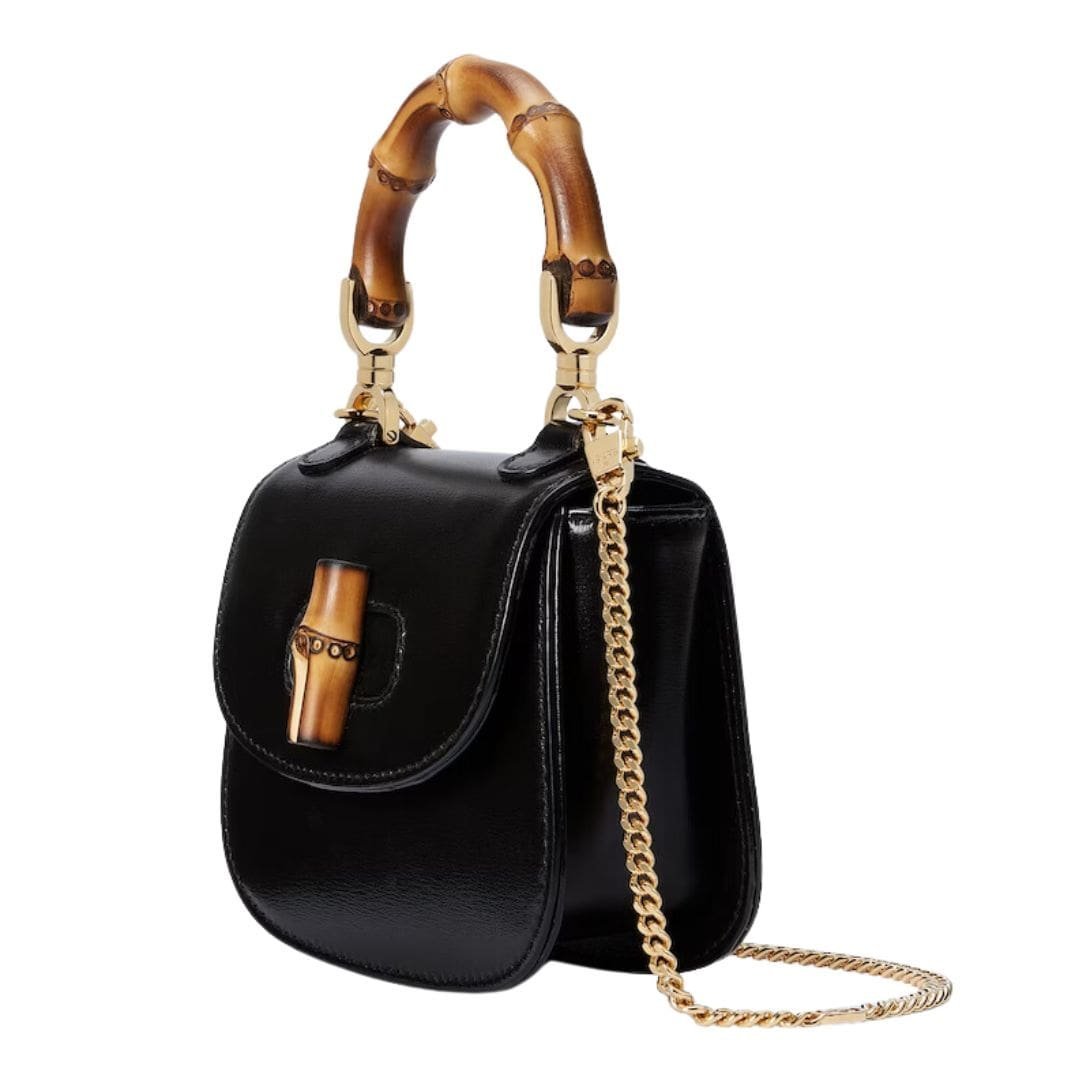 The defining element of this bag is its bamboo handle, handcrafted through a meticulous process that involves heating and bending bamboo to achieve the perfect arc. This unique handle not only serves as a functional component but also as a bold design statement, symbolizing Gucci’s blend of tradition and innovation. GUCCI BAMBOO 1947 SUPER MINI BAG