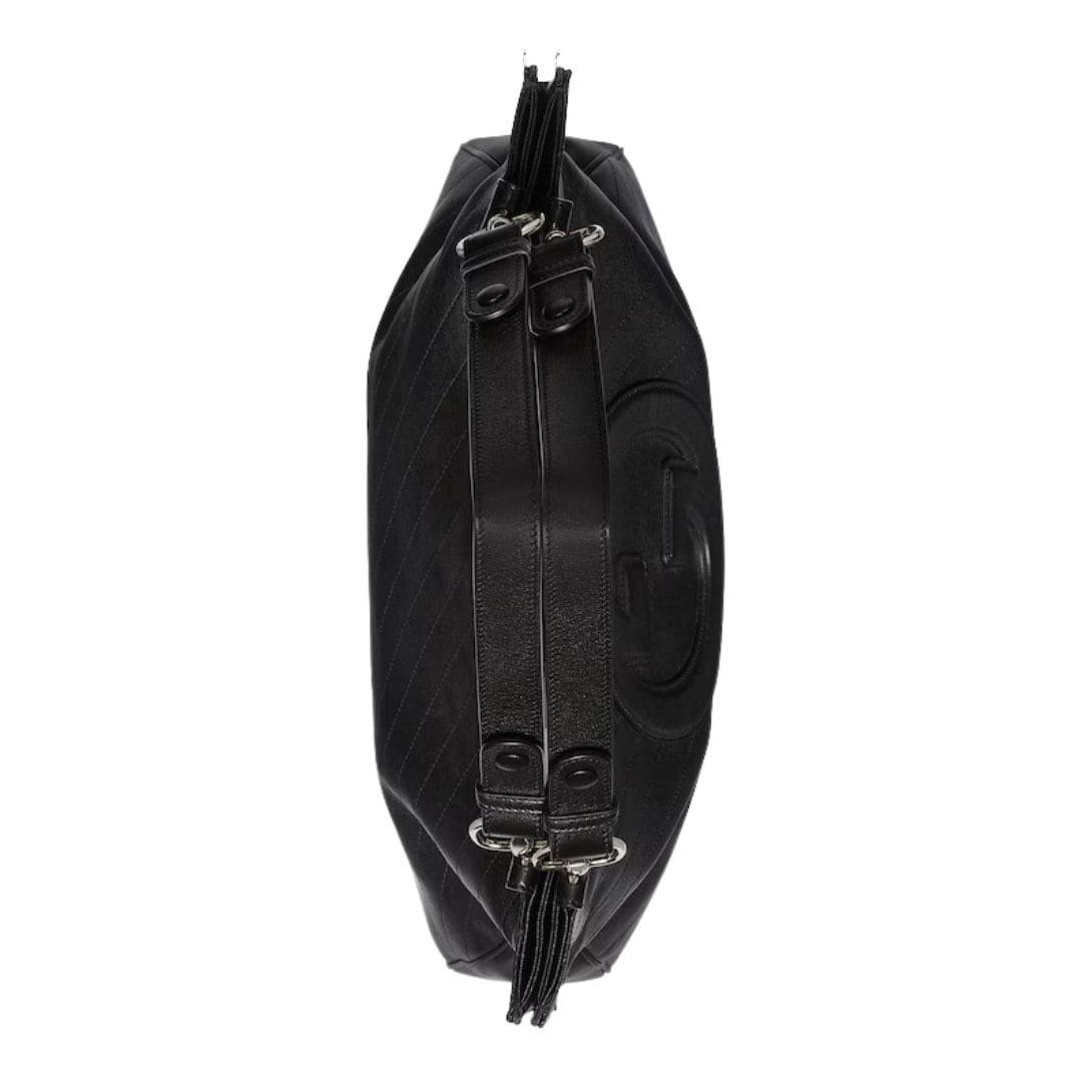 The bag features the signature Gucci Interlocking G emblem, prominently displayed on the front, adding a touch of iconic branding. This emblem is not only a mark of authenticity but also a nod to the brand’s rich heritage. The gold-tone hardware, including the emblem and the sturdy zipper pulls, enhances the bag’s luxurious appeal and ensures durability.