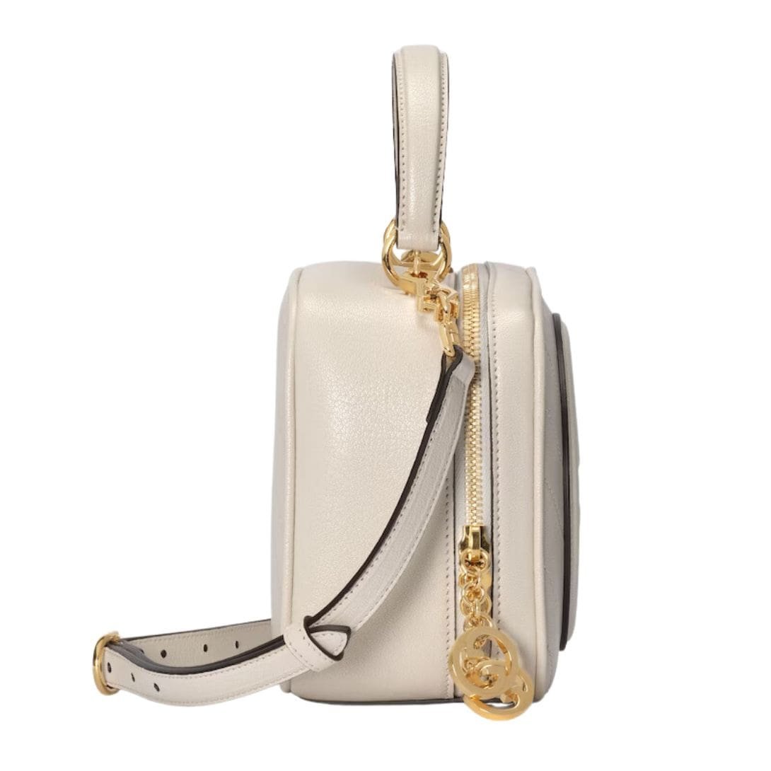 One of the standout features of the Gucci Blondie Top Handle Bag is its iconic interlocking GG logo, prominently displayed on the front. This logo is crafted from polished gold-tone metal, adding a touch of opulence to the overall design. The bag also includes a detachable and adjustable shoulder strap, providing versatility in how it can be worn—either as a chic top-handle or a convenient crossbody. GUCCI BLONDIE TOP HANDLE BAG