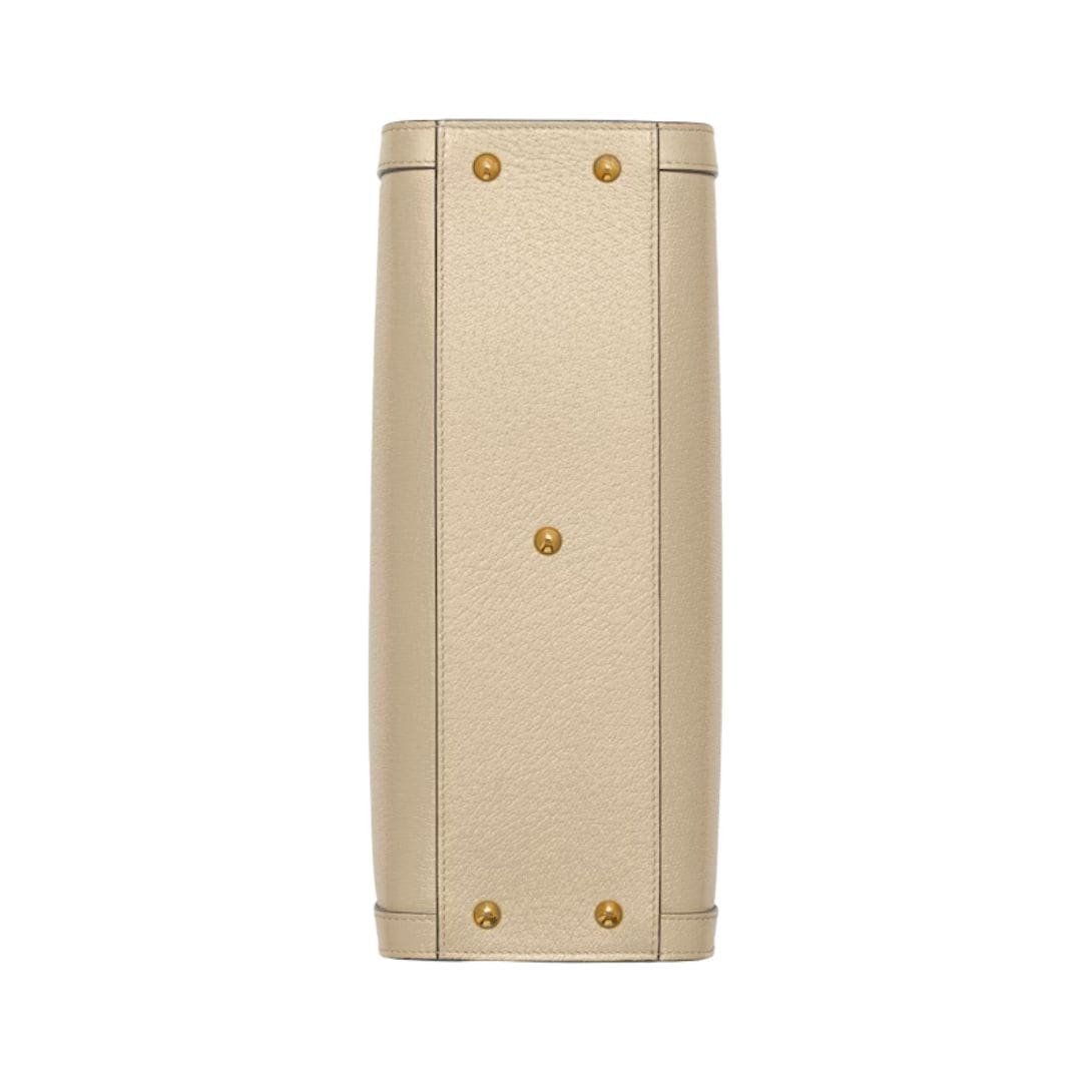 interior of the Gucci Diana Medium Tote Bag is thoughtfully designed with practicality in mind. It features multiple compartments, including a zip pocket and open pockets, providing ample space for essentials like a wallet, phone, and cosmetics. The interior is lined with soft, high-quality materials, ensuring that your belongings are protected and easy to access.