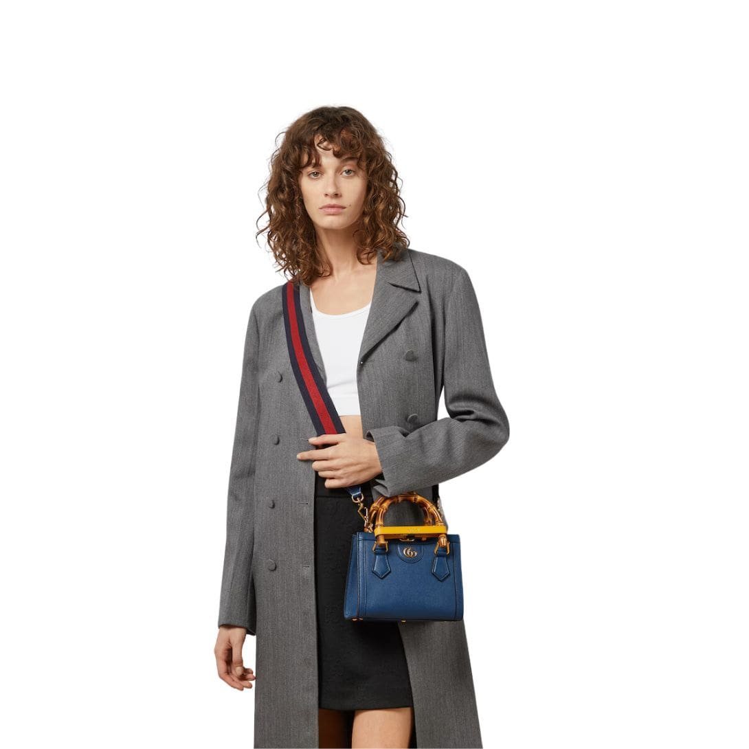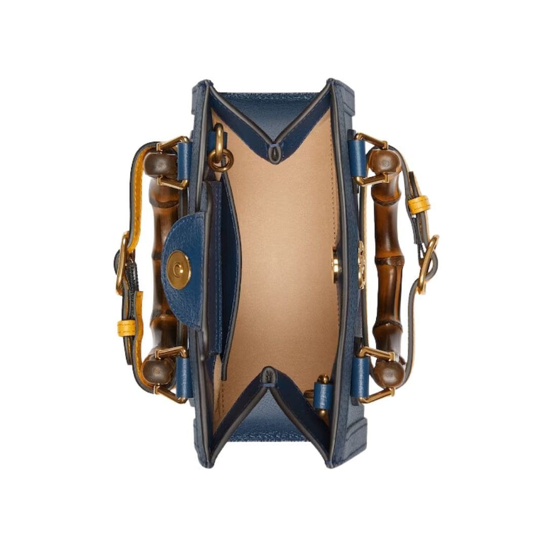 Crafted from high-quality leather, the mini tote exudes sophistication with its sleek design and meticulous attention to detail. The leather is smooth and supple, offering a luxurious feel while ensuring durability. One of the most distinctive features of the Gucci Diana Mini Tote Bag is its bamboo top handles. These iconic handles harken back to the original Gucci bamboo bag introduced in 1947, adding a touch of vintage elegance to the modern silhouette. The bamboo is carefully treated and polished, providing a comfortable grip and a unique aesthetic appeal.