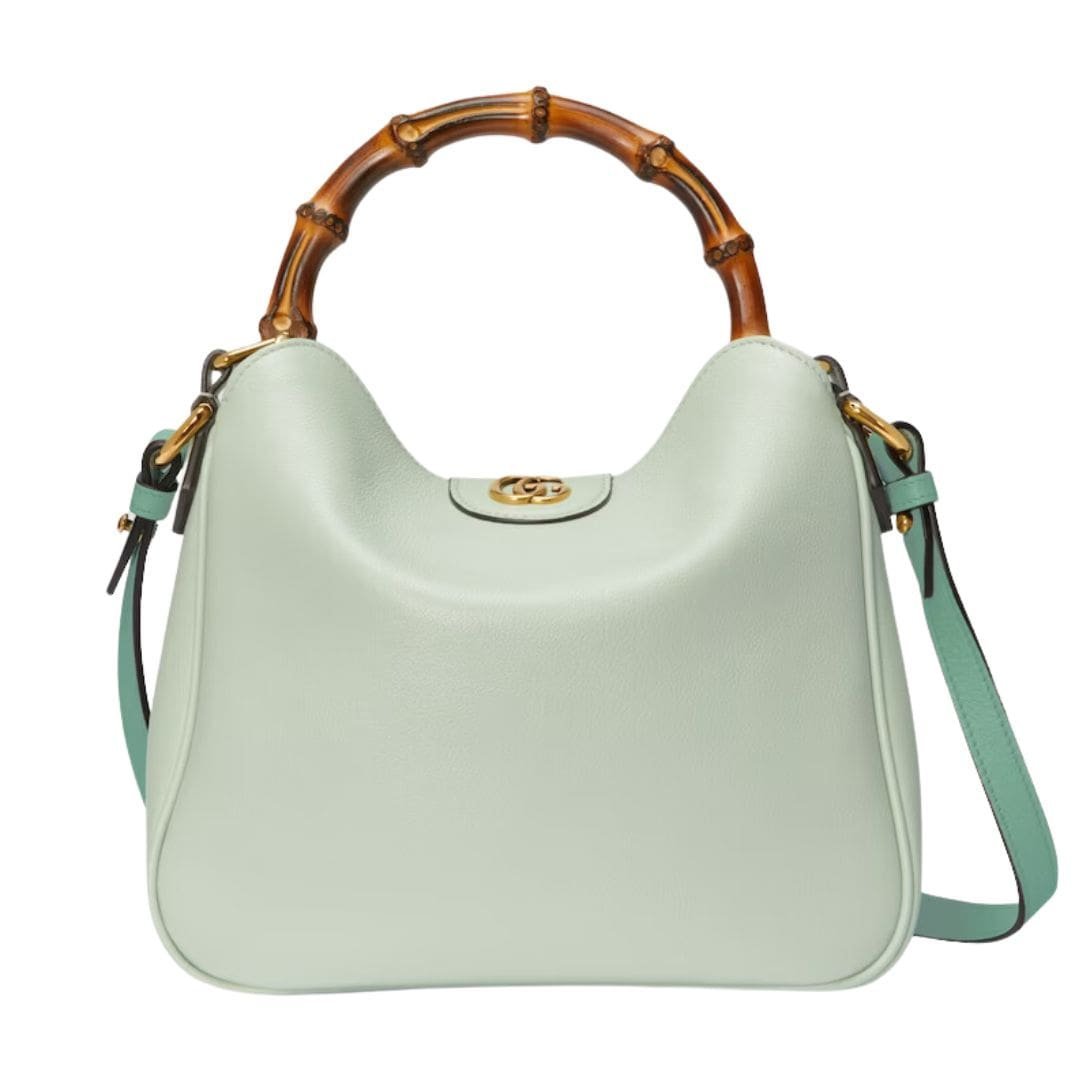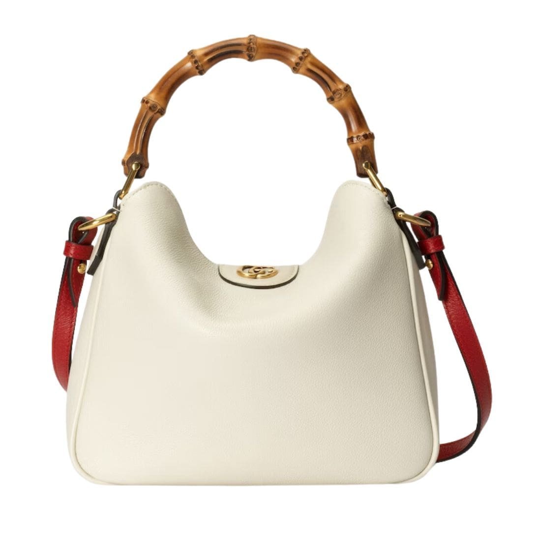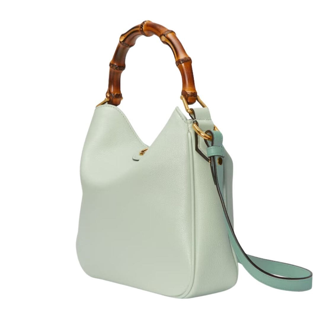 One of the standout features of the Gucci Diana bag is its bamboo handles, a signature element that has been part of Gucci’s design heritage since the 1940s. These curved handles are meticulously crafted and polished, providing a unique and stylish contrast to the leather body. In addition to the bamboo handles, the bag includes a detachable shoulder strap, allowing for multiple carrying options and adding to its practicality. GUCCI DIANA SMALL SHOULDER BAG
