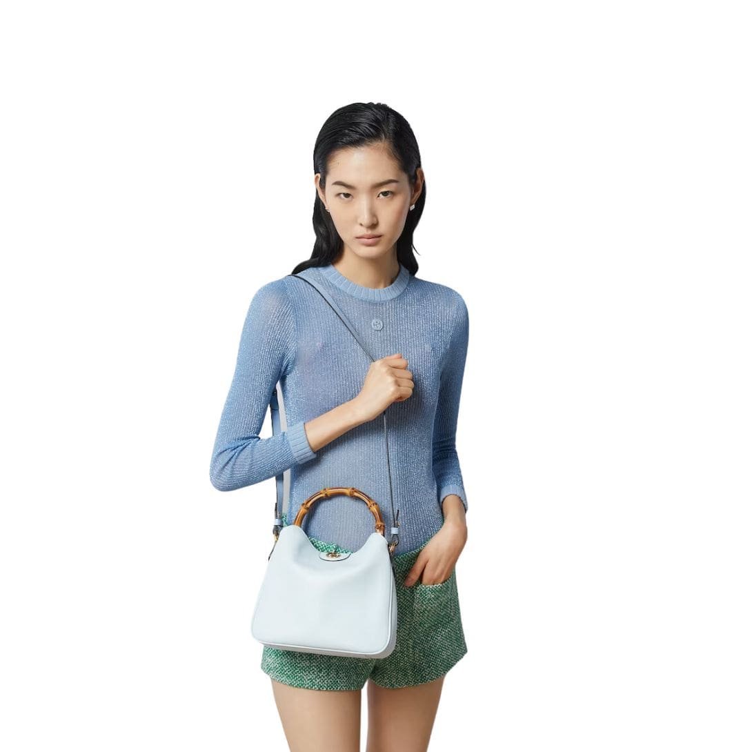 One of the standout features of the Gucci Diana bag is its bamboo handles, a signature element that has been part of Gucci’s design heritage since the 1940s. These curved handles are meticulously crafted and polished, providing a unique and stylish contrast to the leather body. In addition to the bamboo handles, the bag includes a detachable shoulder strap, allowing for multiple carrying options and adding to its practicality. GUCCI DIANA SMALL SHOULDER BAG