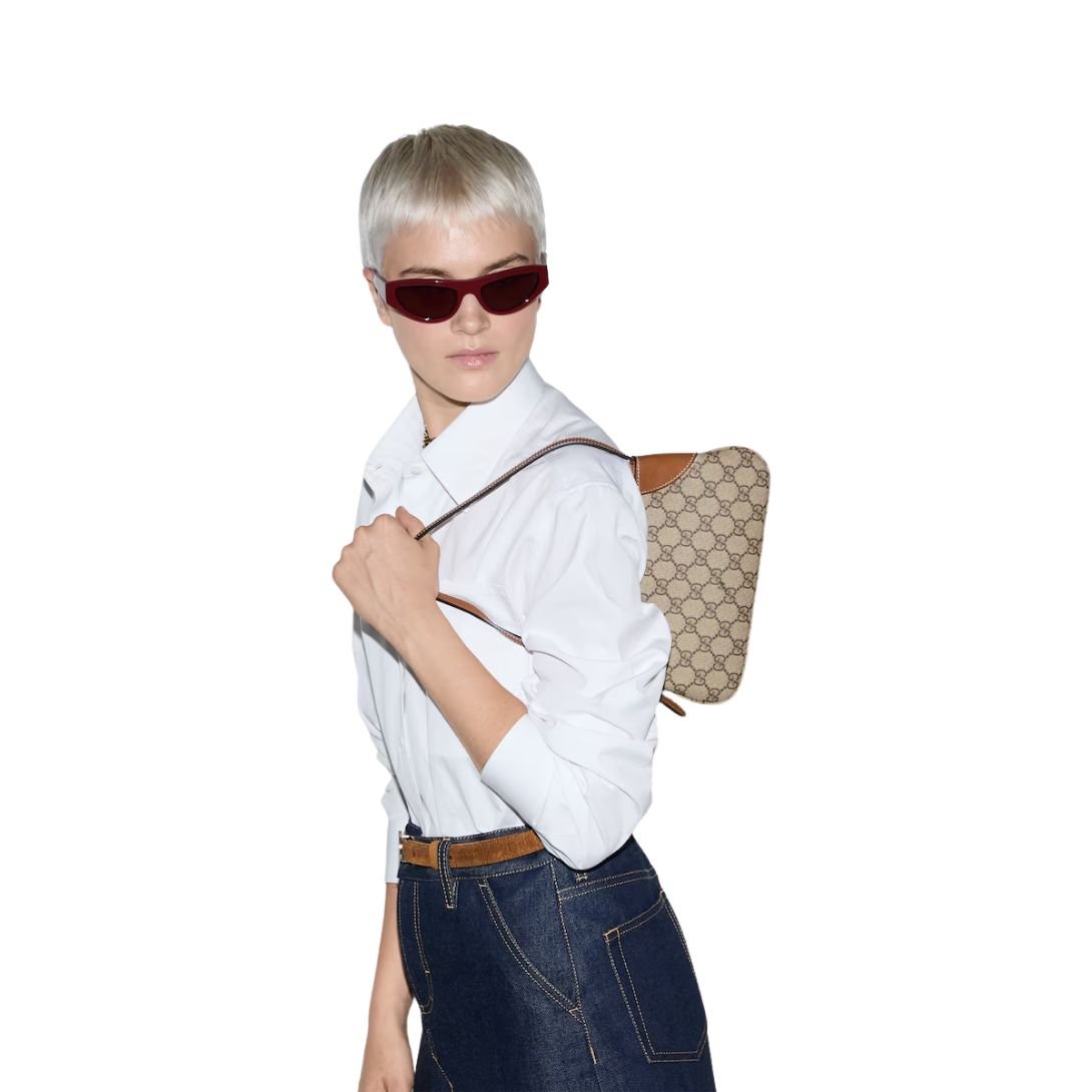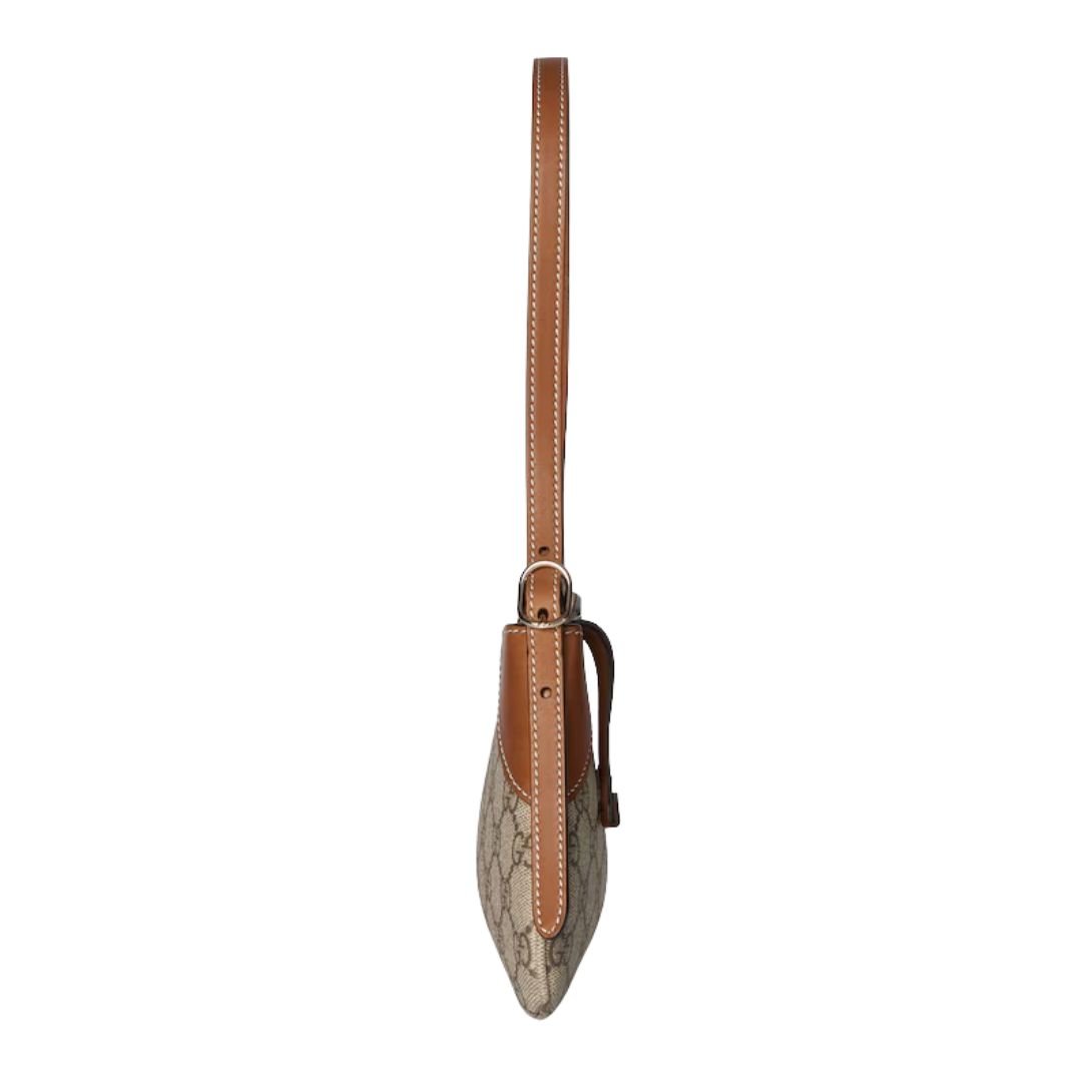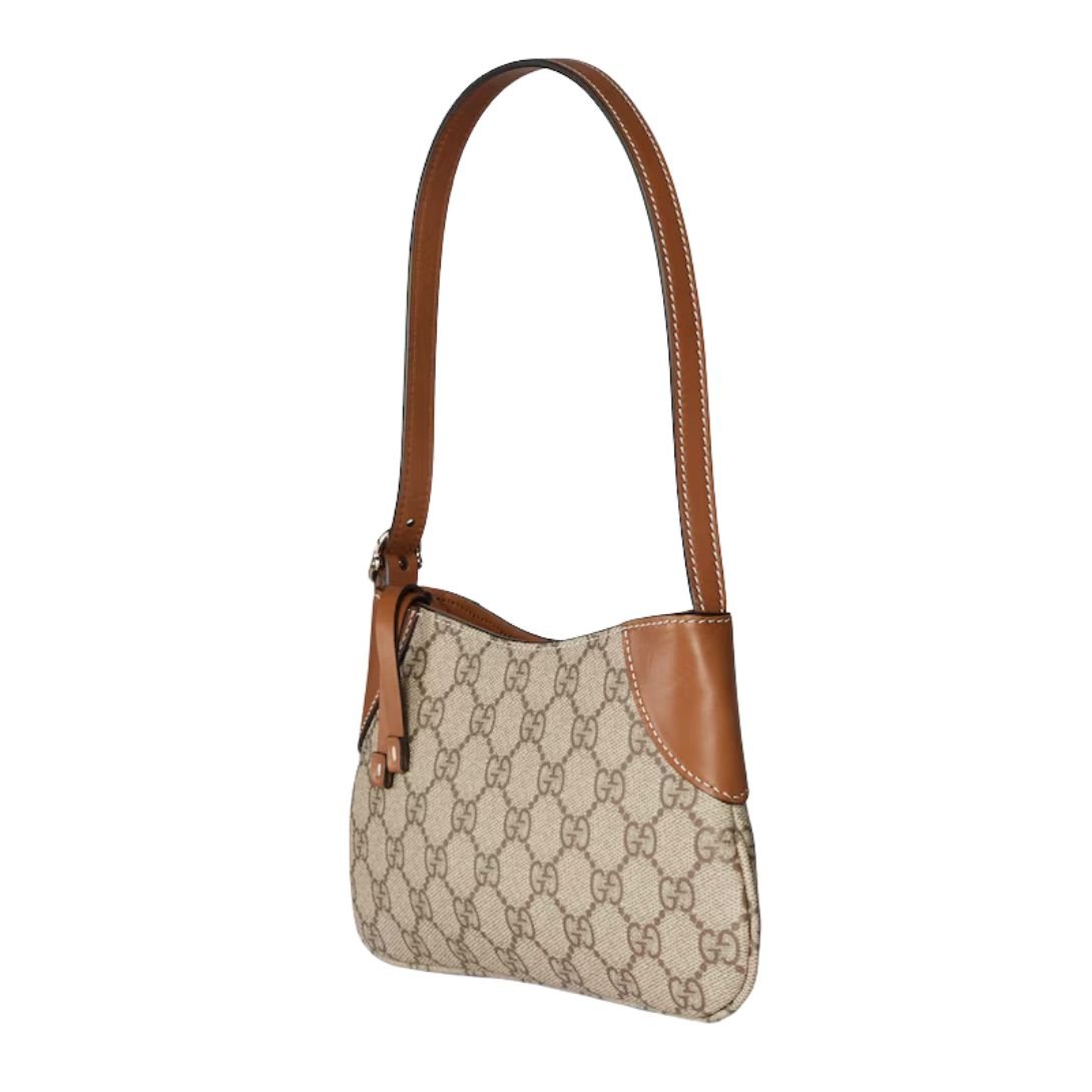 This elegant beige and dark brown small shoulder bag is a key piece from the latest collection of small accessories. Made from the new GG Monogram coated fabric, it combines a rich beige and brown color scheme, complemented by a tonal brown leather trim for a seamless, sophisticated look.