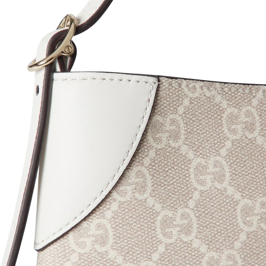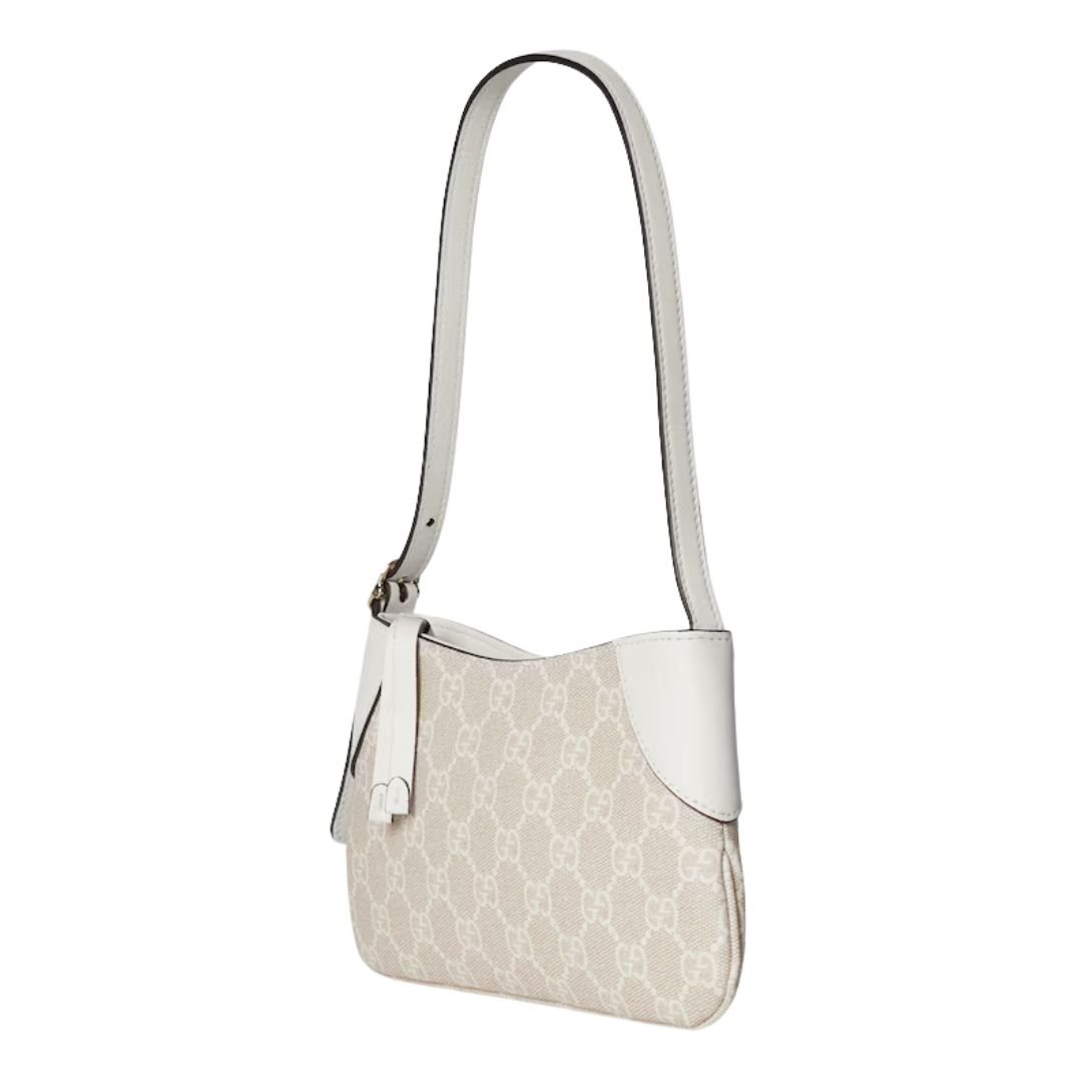 GUCCI GG EMBLEM SMALL SHOULDER BAG BEIGE AND WHITE