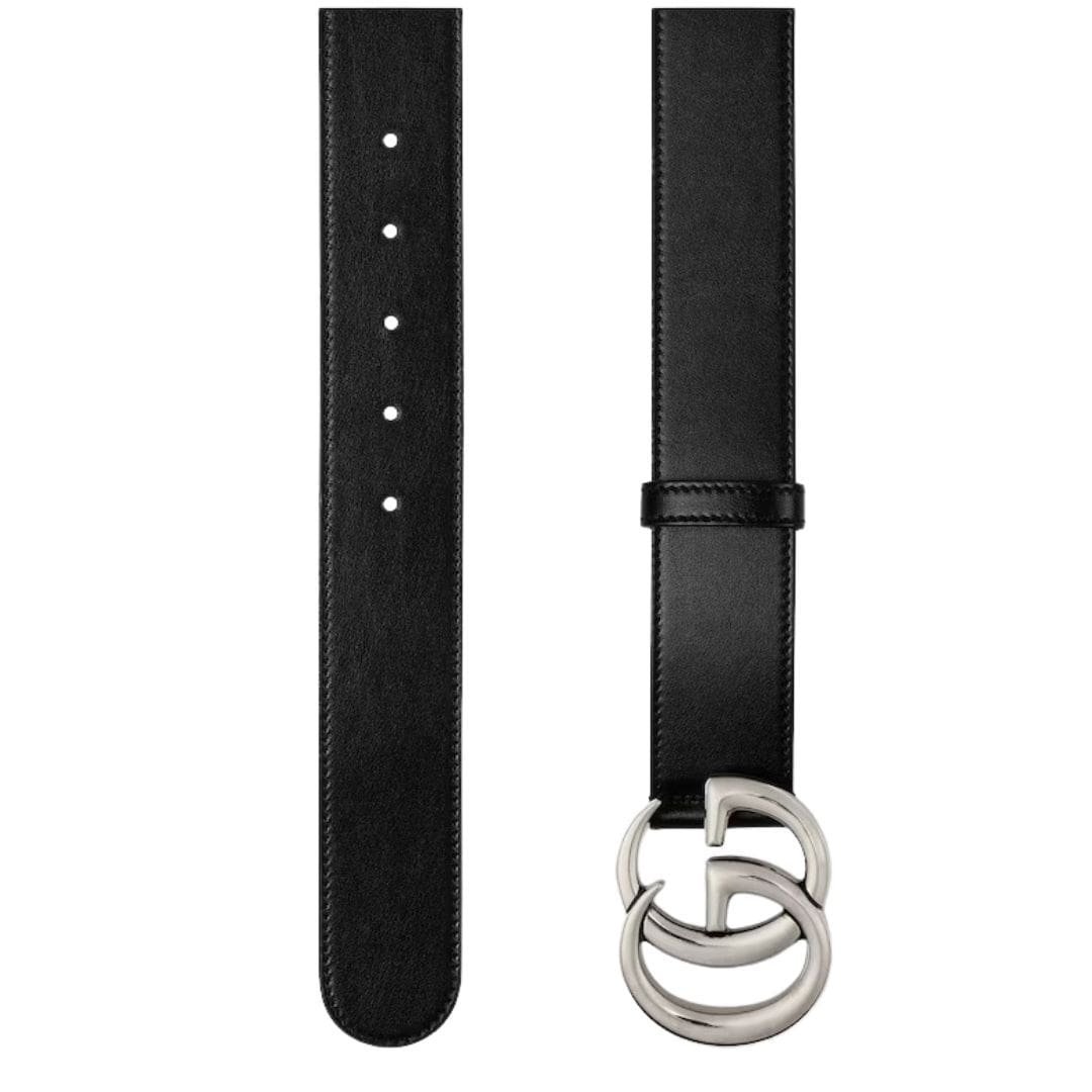 Crafted from luxurious black leather, this belt exudes elegance, while its shiny gold-toned hardware, featuring the distinctive Double G buckle, adds a touch of opulence to any ensemble. Beyond being a mere accessory, this emblematic adornment represents our heritage and unwavering dedication to exceptional design and meticulous attention to detail.