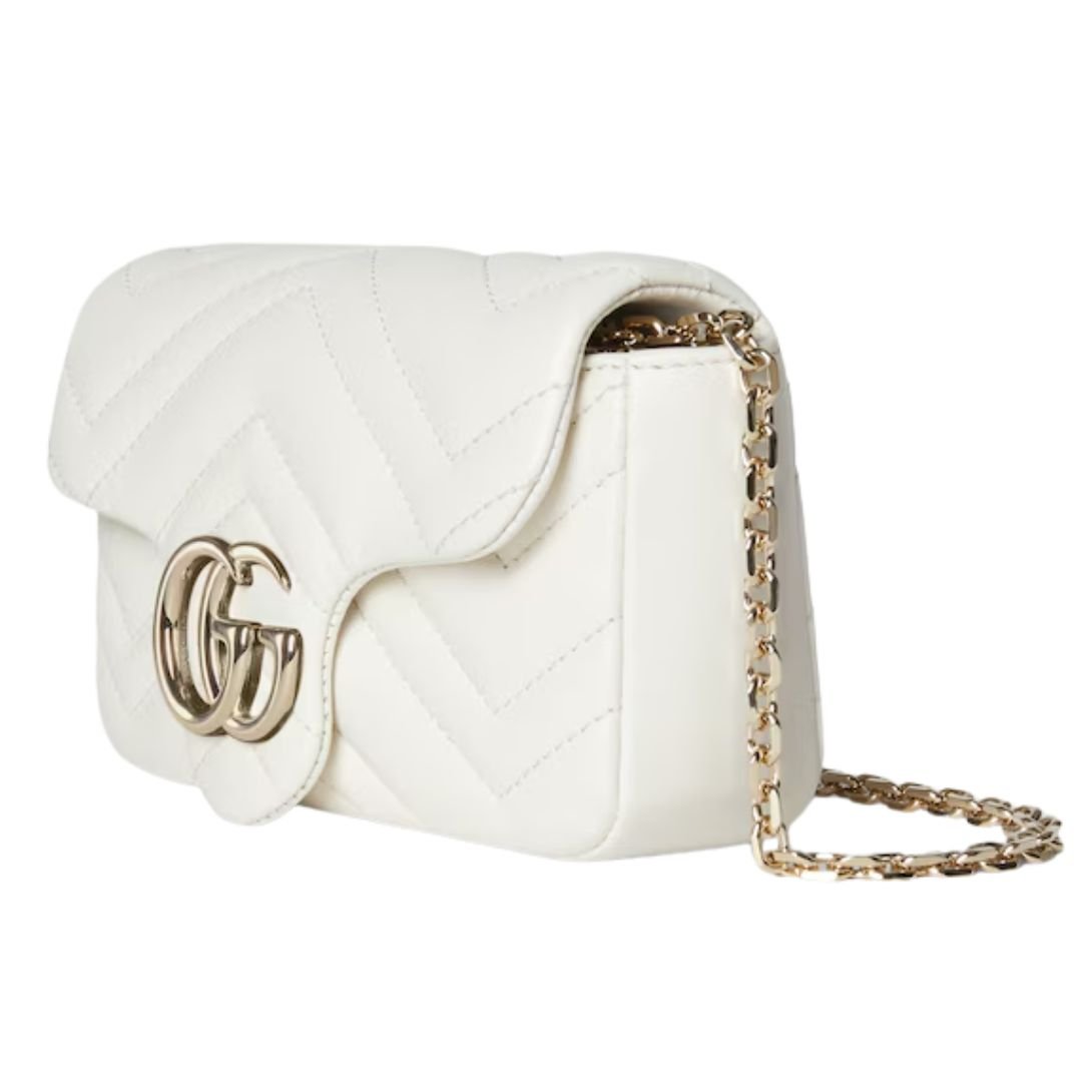 GUCCI GG MARMONT MATELASSÉ LEATHER SUPER MINI BAG WHITE