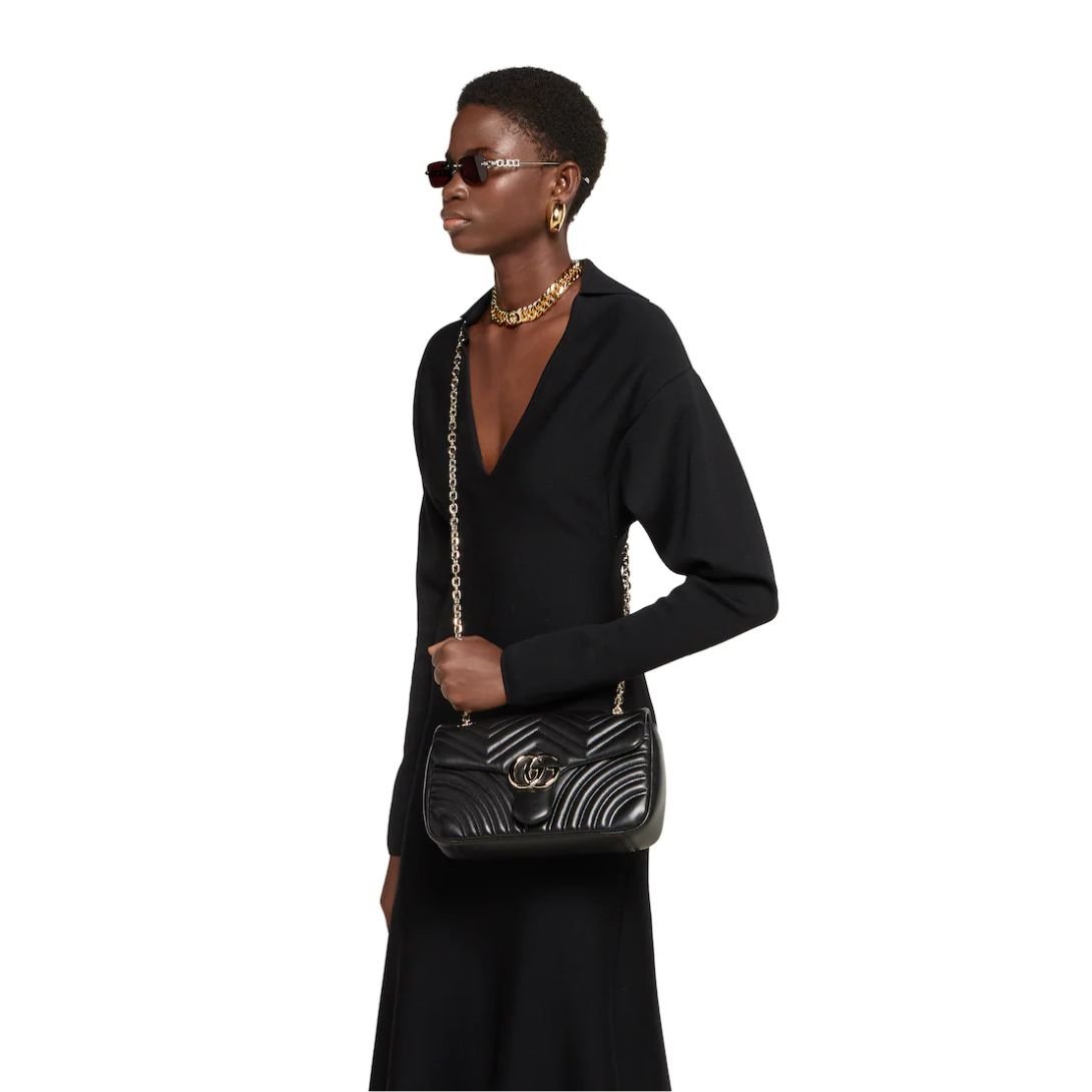 Made in Italy, this GG Marmont flap bag seamlessly combines elegance, practicality, and iconic design.