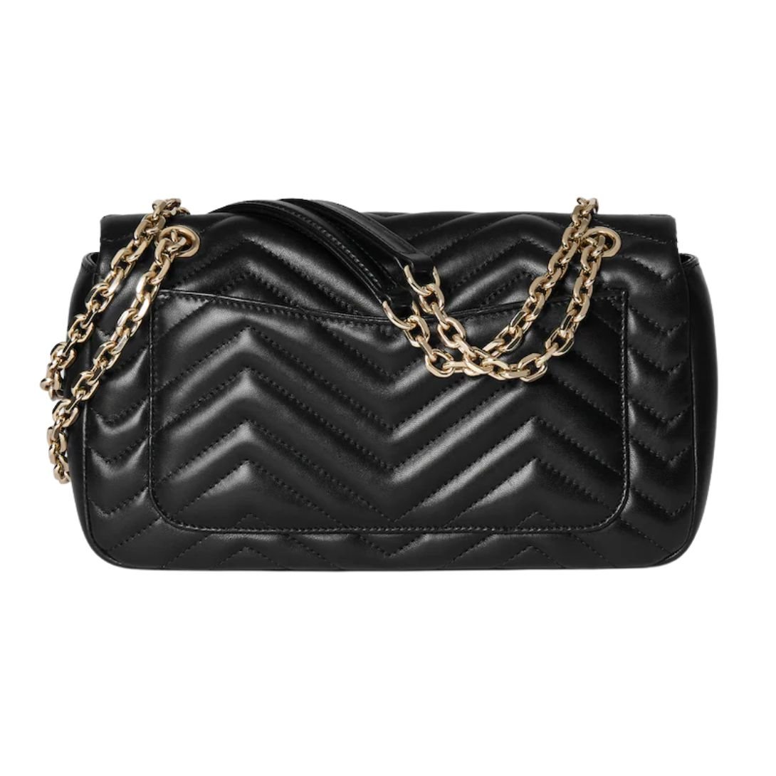 GUCCI GG MARMONT MEDIUM SHOULDER BAG BLACK LEATHER