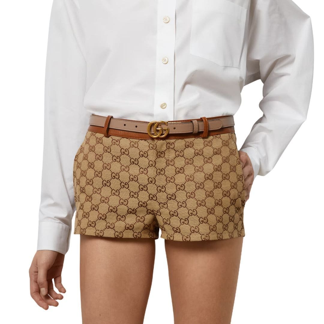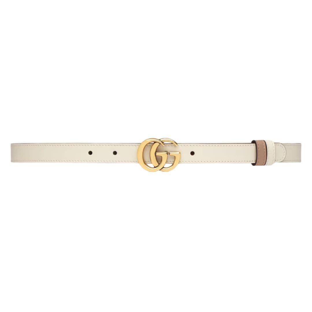 Gucci GG Marmont Reversible Thin Belt Continuing our legacy of timeless design and innovative craftsmanship, we proudly unveil the latest iteration of the iconic GG Marmont collection. Evolving with each season, this renowned line seamlessly merges the vintage allure of ‘70s GG hardware with contemporary elegance, culminating in a symbol of enduring style and sophistication.